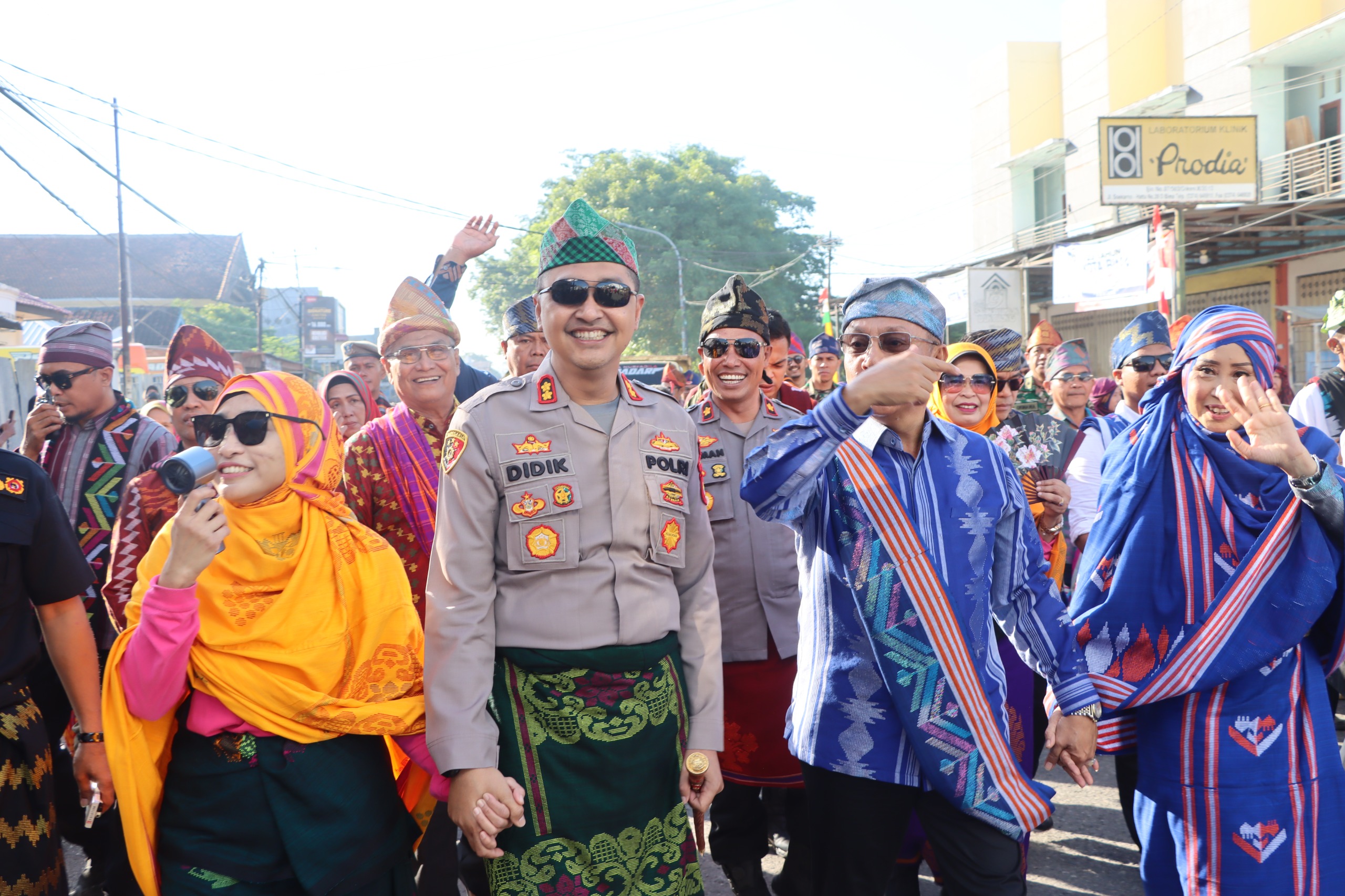 Bima Kota, 26 April 2025 – Kapolres Bima Kota AKBP Didik Putra Kuncoro, S.I.K., M.Si., bersama jajaran Forum Koordinasi Pimpinan Daerah (Forkopimda) Kota Bima turut ambil bagian dalam kegiatan budaya tahunan Festival Rimpu Mantika yang digelar meriah pada Sabtu pagi (26/4/2025).