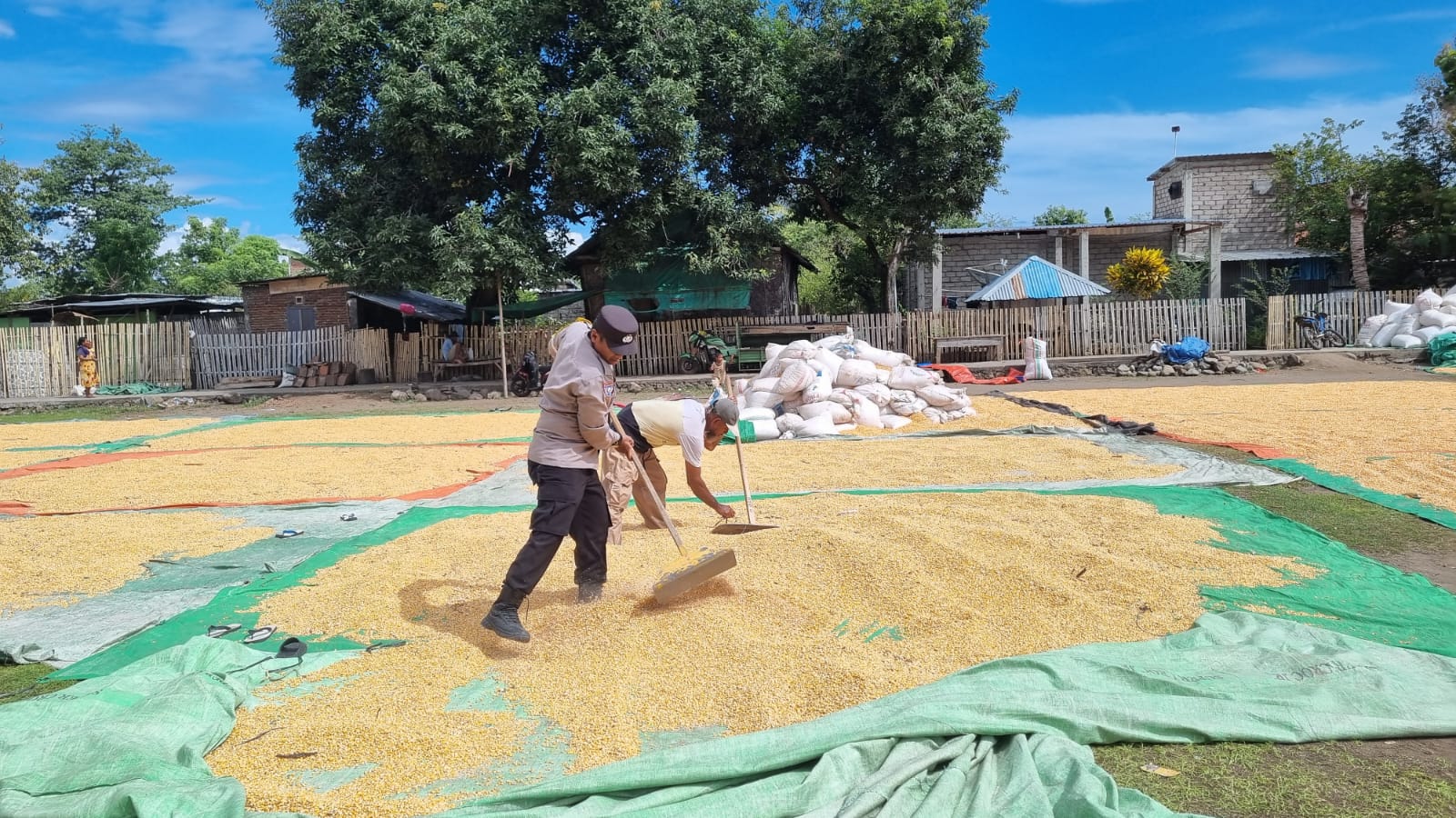 Bhabinkamtibmas Desa Adu Dampingi Warga Jemur Jagung, Dukung Program Ketahanan Pangan Menuju Indonesia Emas