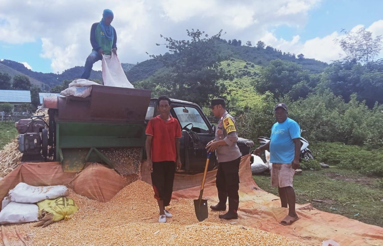 Dalam rangka mendukung penuh program ketahanan pangan nasional Bhabinkamtibmas Polsek Monta Polres Bima Polda NTB memantau dan membantu proses penggilingan jagung Warga.