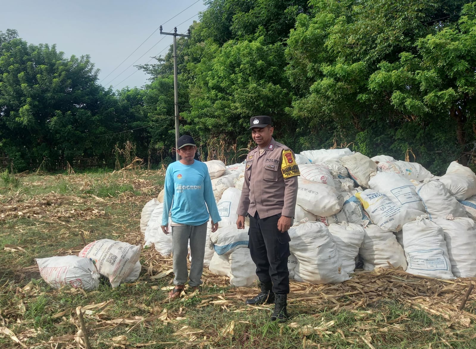 Bhabinkamtibmas Desa Serakapi Polsek Woja, BRIPKA Irfan Setiawan, melaksanakan pemantauan terhadap kegiatan warga yang tengah mengumpulkan hasil panen jagung milik Bapak Abdul Munir di Dusun O’o Ragi, Desa Serakapi, Kecamatan Woja, Kabupaten Dompu.