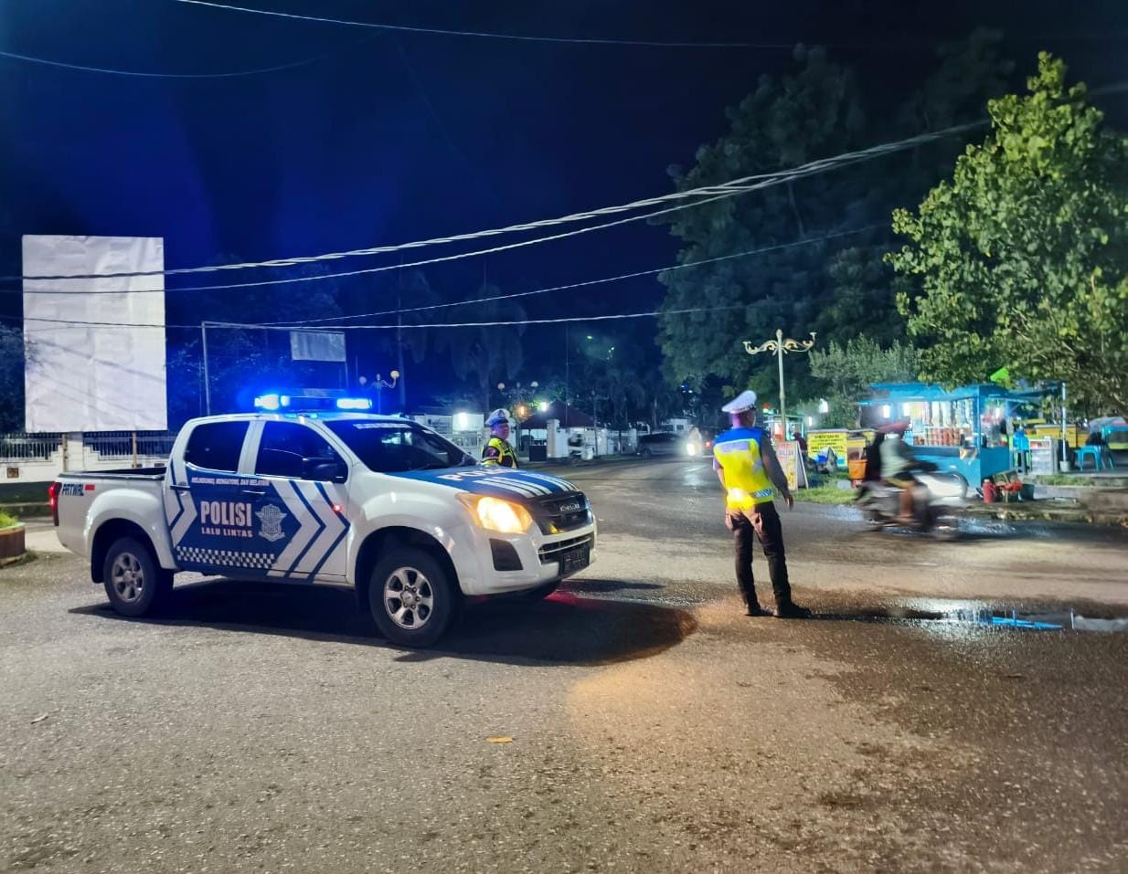 Sat Lantas Polres Bima Kota Gelar Blue Light Patrol dan Pengaturan Lalu Lintas di Malam Hari