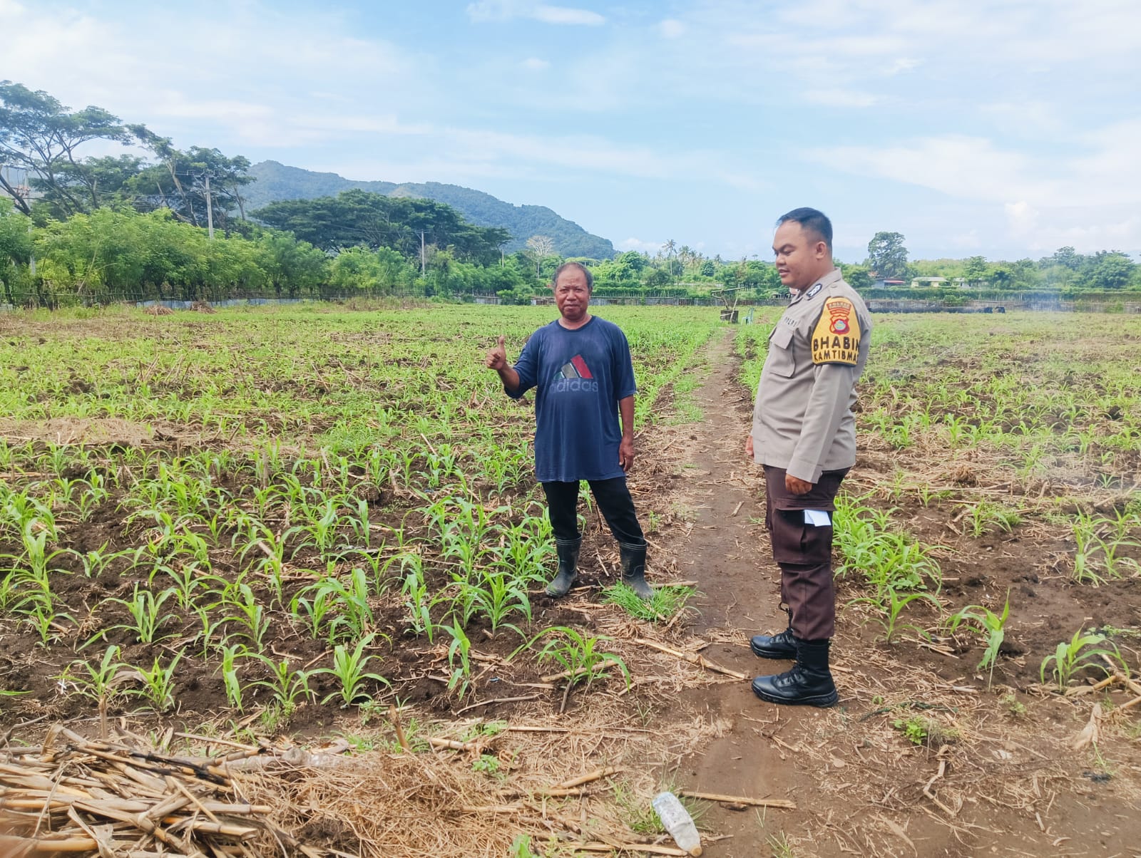 Kehadiran Bhabinkamtibmas di lahan jagung milik warga, yang tanamannya berusia sekitar 15 hari, menunjukkan perkembangan tanaman yang sehat dan pertumbuhan yang memuaskan. Ia menghimbau kepada para petani agar segera melaporkan jika mengalami kendala, seperti kelangkaan pupuk pada tahap pemupukan, agar bisa segera dikoordinasikan dengan Petugas Penyuluh Lapangan (PPL) Pertanian.