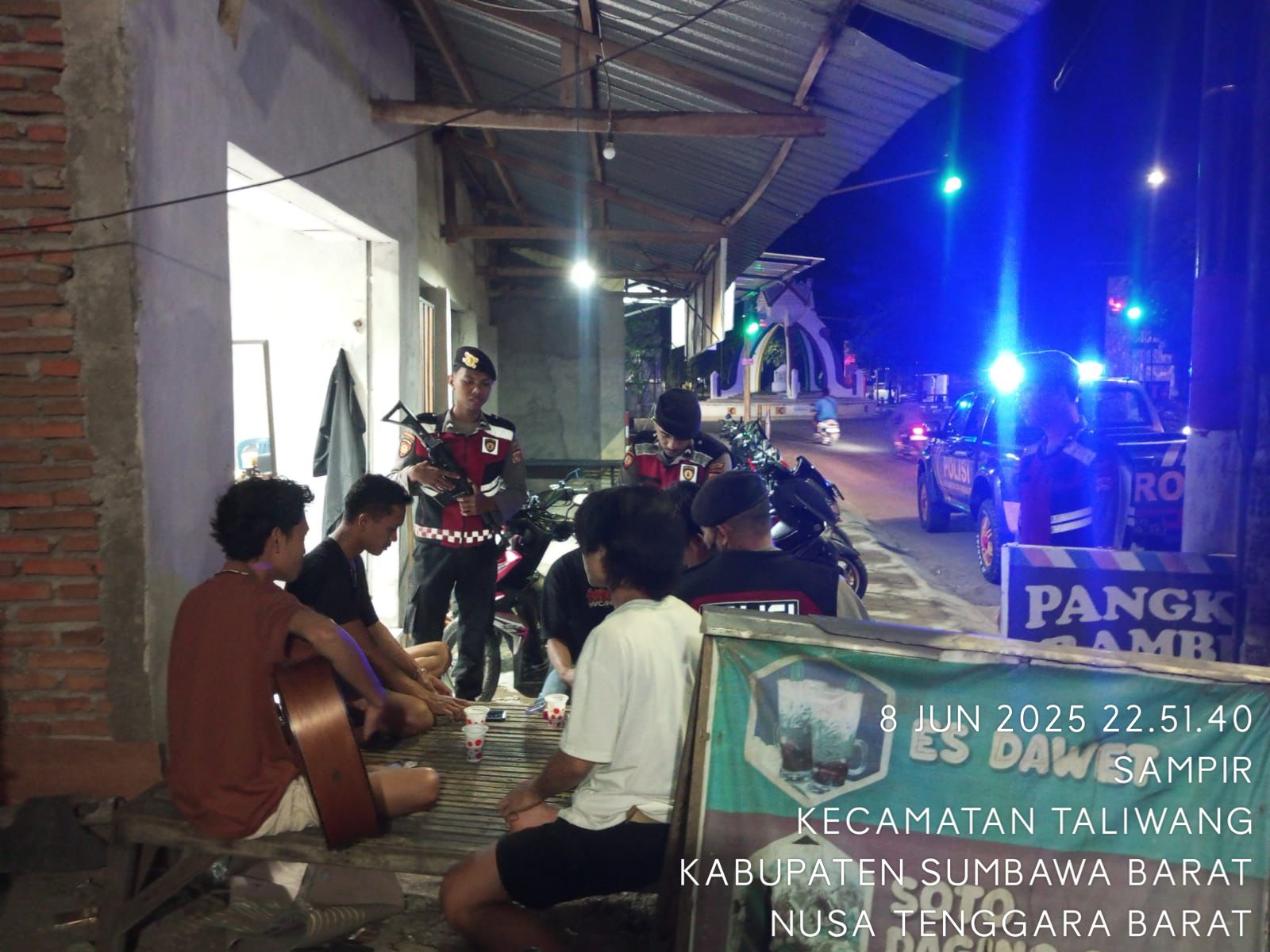 Sumbawa Barat, NTB – Guna menjaga situasi keamanan dan ketertiban masyarakat (Kamtibmas), Satuan Samapta Polres Sumbawa Barat melaksanakan kegiatan patroli dialogis pada Minggu malam, 8 Juni 2025, pukul 22.00 WITA. Patroli ini dilaksanakan di wilayah Kelurahan Sampir, Kecamatan Taliwang, Kabupaten Sumbawa Barat.