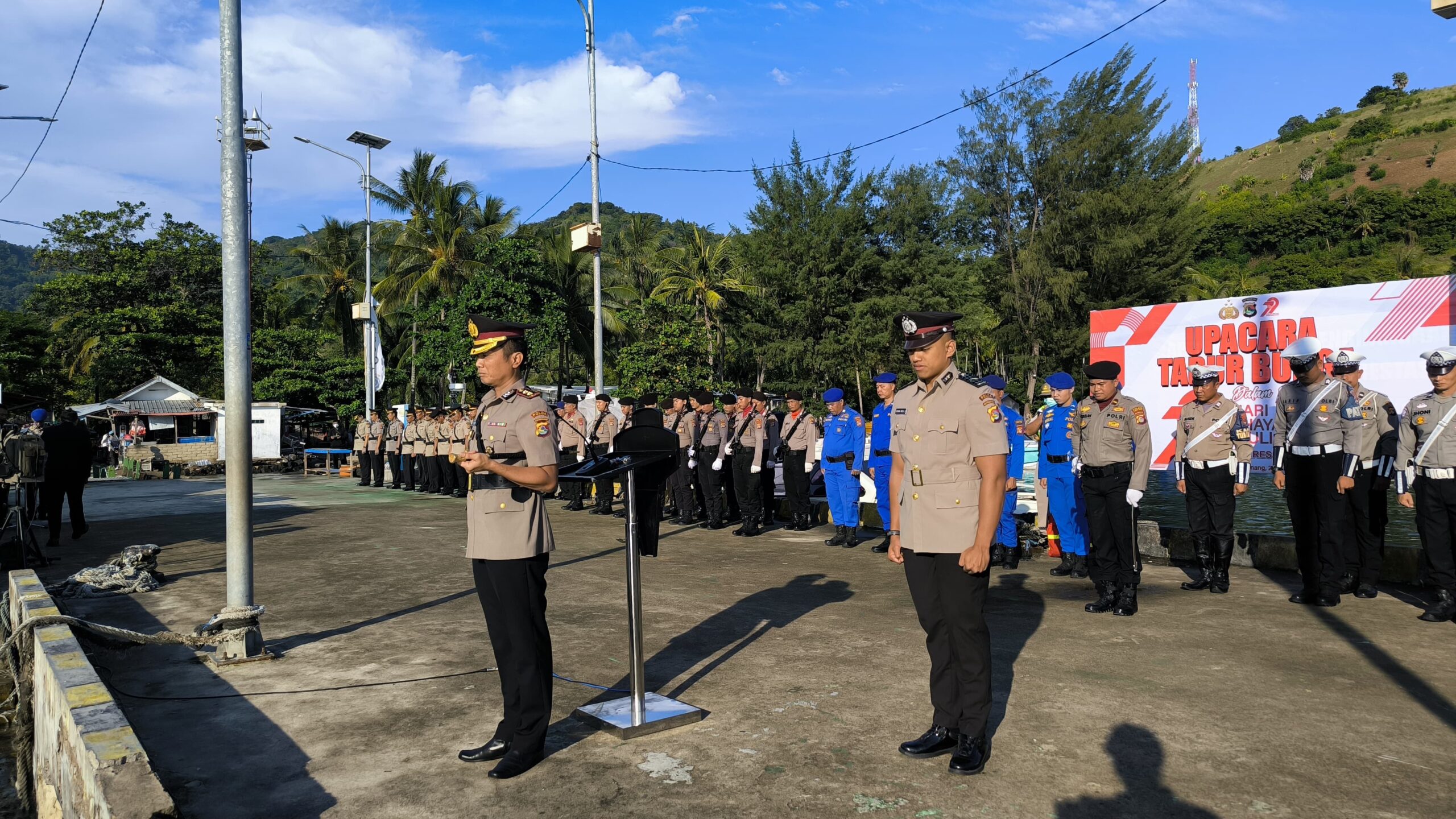 Upacara dipimpin langsung oleh Kapolres Lombok Utara AKBP Agus Purwanta, S.I.K., yang turut didampingi oleh para Pejabat Utama dan personel Polres Lombok Utara. Rangkaian kegiatan diawali dengan penghormatan kepada arwah para pahlawan, dilanjutkan dengan prosesi tabur bunga di laut perairan Teluk Nara sebagai simbol penghormatan.