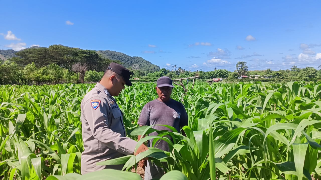 Bhabinkamtibmas Desa Sekongkang Bawah Laksanakan Sambang dan Cek Ketahanan Pangan Lahan Jagung MT2