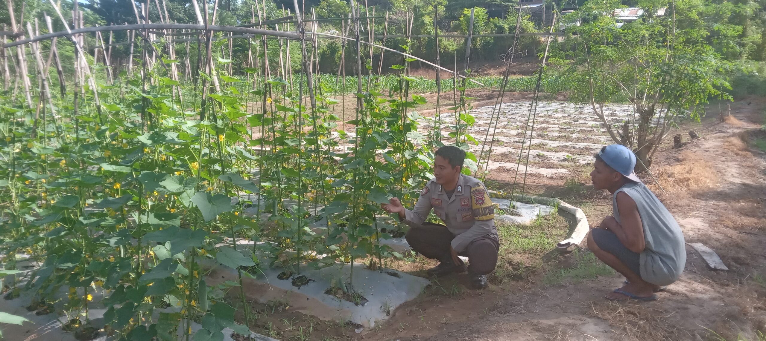 Dukung Ketahanan Pangan, Bhabinkamtibmas Desa Belo Dampingi Warga Kelola Tanaman Mentimun
