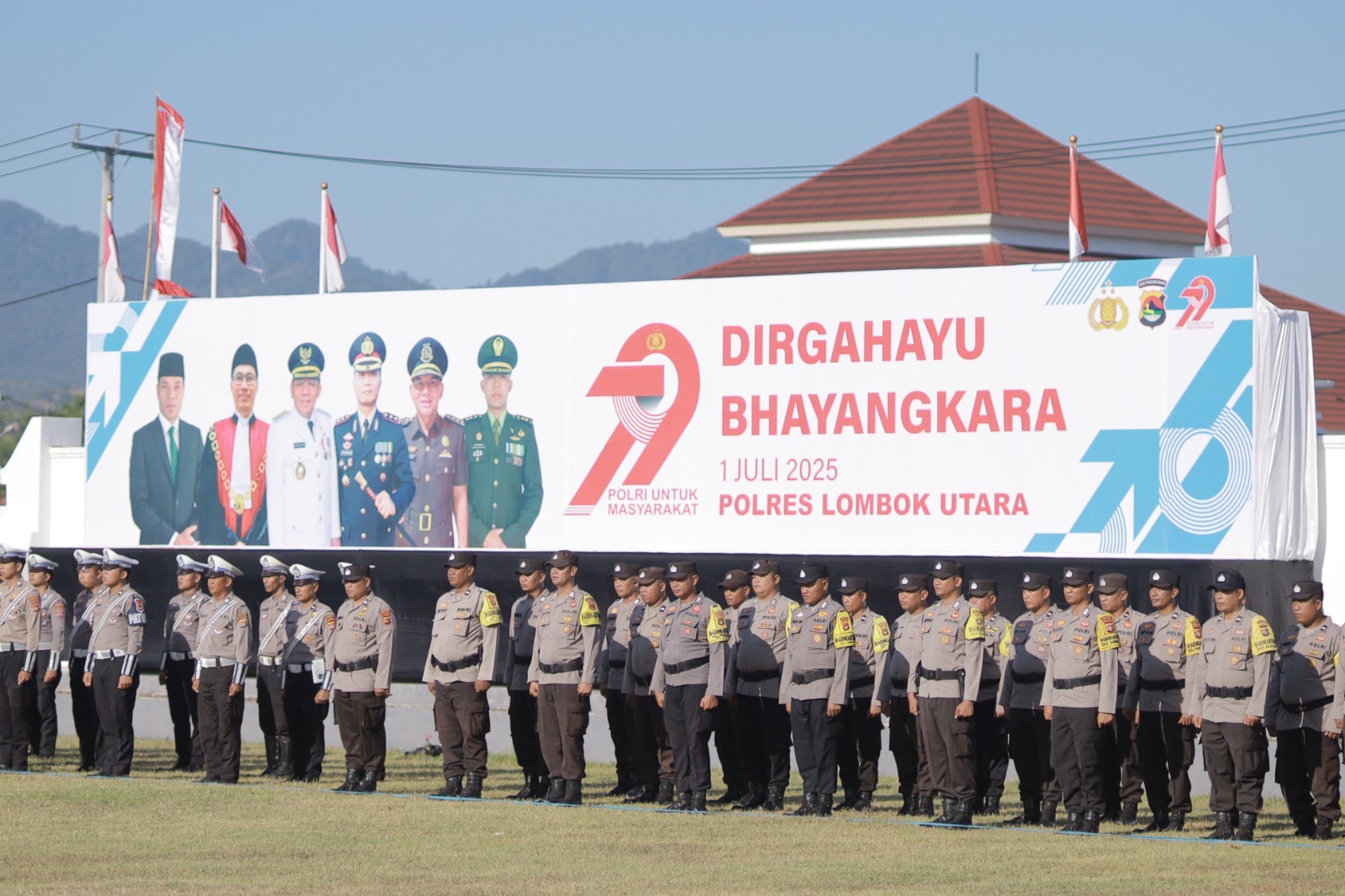 *Lotara* — Suasana pagi yang cerah di Lapangan Pemda Lombok Utara, Selasa (1/7/2025), menjadi saksi semangat pengabdian tanpa henti. Dalam rangka memperingati Hari Bhayangkara ke-79, Pemerintah Kabupaten Lombok Utara bersama Polres Lombok Utara menggelar upacara yang penuh khidmat dan semangat, mengusung tema “Polri untuk Masyarakat.”