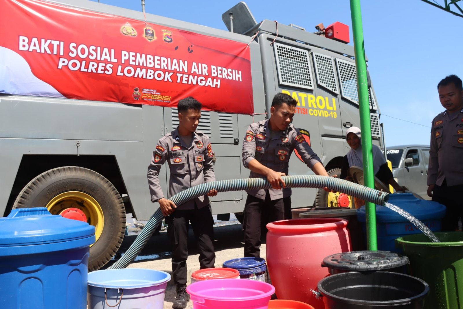 ‎Brata mengungkapkan distribusi air bersih dilakukan dengan menggunakan dua unit kendaraan taktis milik Polres Lombok Tengah.
