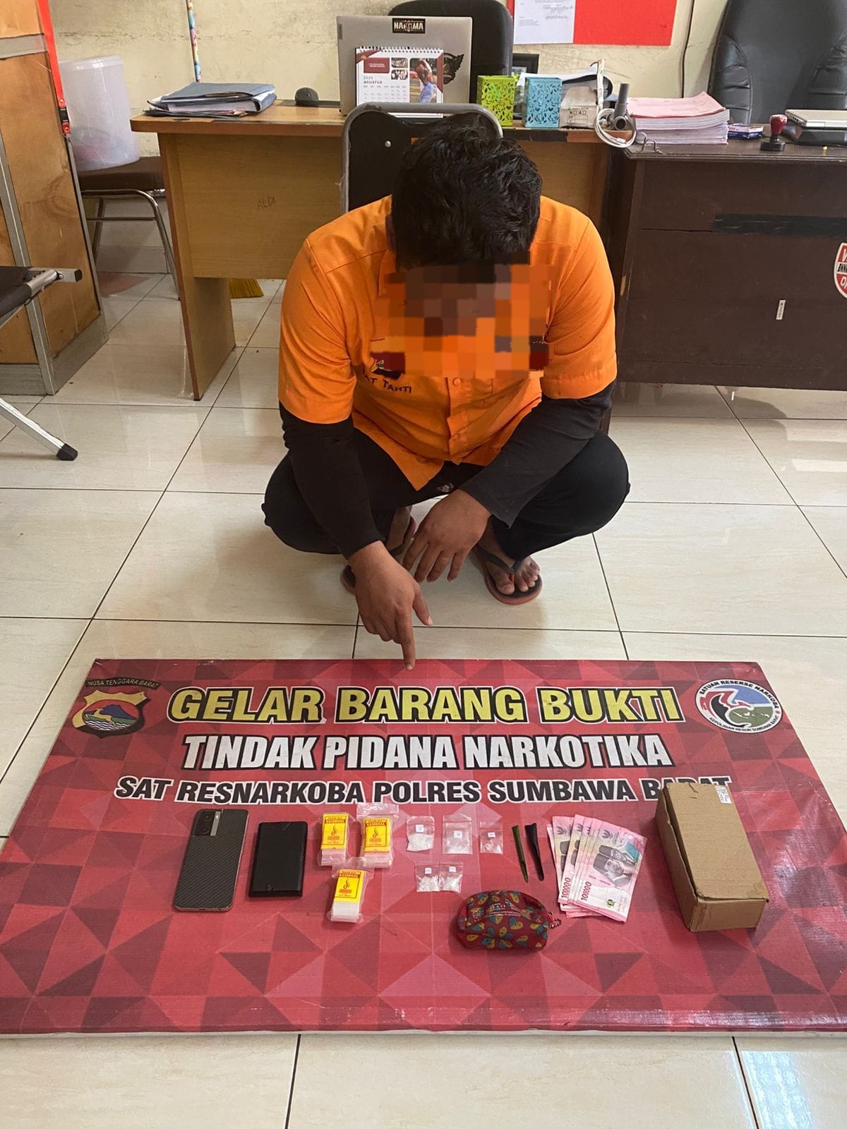 Penangkapan terhadap EK dilakukan pada Rabu, 9 Juli 2025, di rumahnya di Desa Tepas, Kecamatan Brang Rea. Dalam operasi tersebut, petugas berhasil mengamankan sejumlah barang bukti berupa narkotika jenis sabu seberat 5,22 gram, uang tunai sebesar Rp700.000, satu unit timbangan digital, plastik klip bening, satu unit handphone, dan sebuah dompet yang digunakan untuk menyimpan sabu.