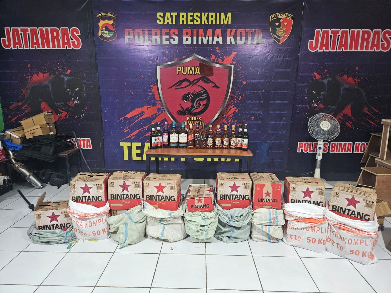 Kapolres Bima Kota AKBP Didik Putra Kuncoro, S.I.K., M.Si. melalui Kasat Reskrim AKP Dwi Kurniawan Kusuma Putra, S.Tr.K., S.I.K., pada Senin (14/7/2025) membenarkan penggerebekan tersebut. Disebutkan bahwa 217 botol miras yang disita terdiri dari berbagai merek terkenal, antara lain Bir Bintang, Chivas Regal, Singleton, Red Label, Black Label dan Anggur Merah