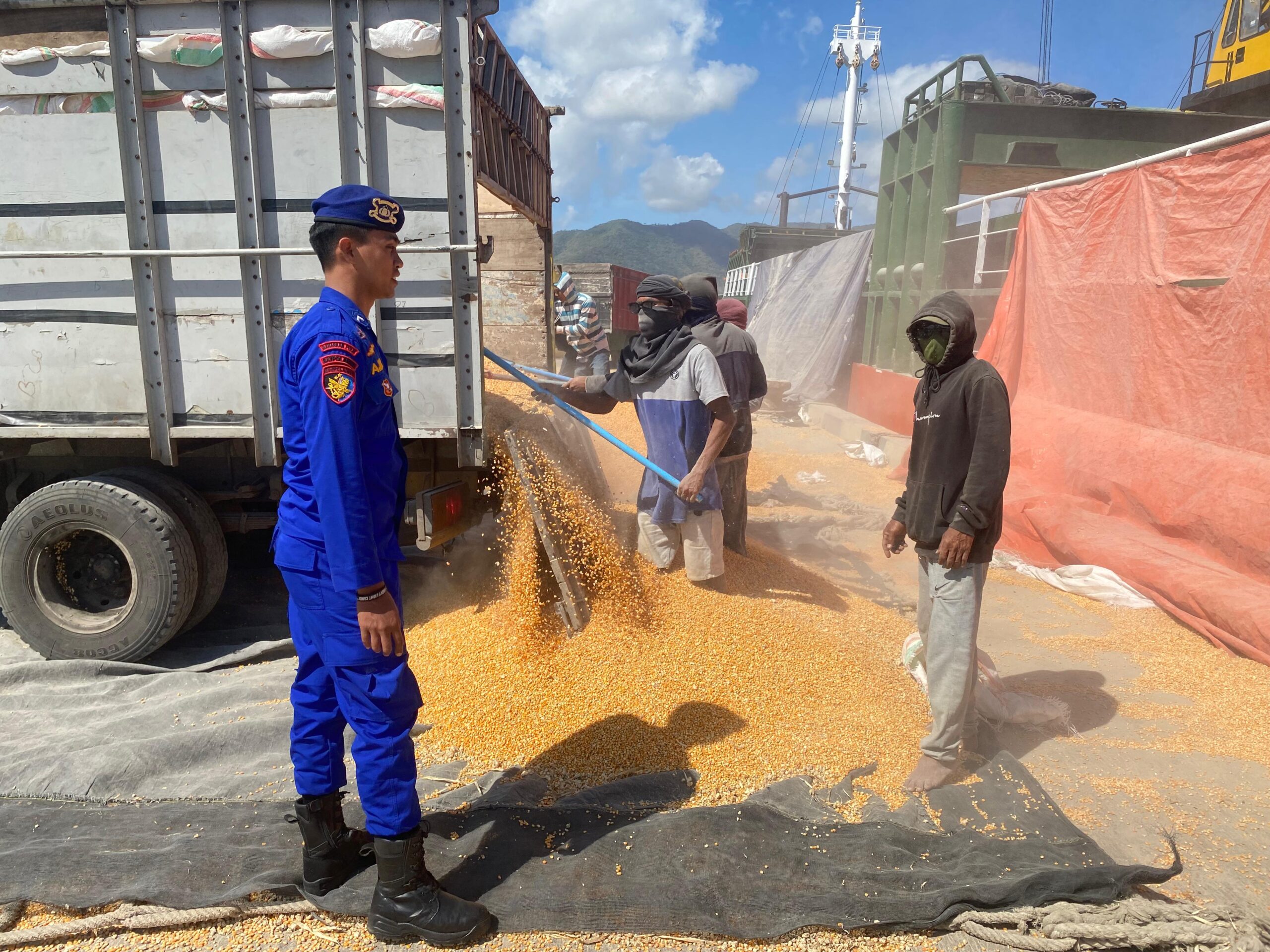 Di Pelabuhan Soro, personel Sat Polairud mengawal proses bongkar muat jagung ipil kuning dari truk ke atas kapal untuk dikirim keluar daerah. Selain pengamanan, petugas juga memberikan imbauan kamtibmas kepada para buruh dan nahkoda kapal agar senantiasa mengutamakan keselamatan dan kesehatan kerja, menggunakan alat pelindung diri (APD), serta tidak membawa muatan melebihi kapasitas kapal. Masyarakat juga diingatkan untuk menjaga kebersihan pelabuhan demi mencegah pencemaran laut.