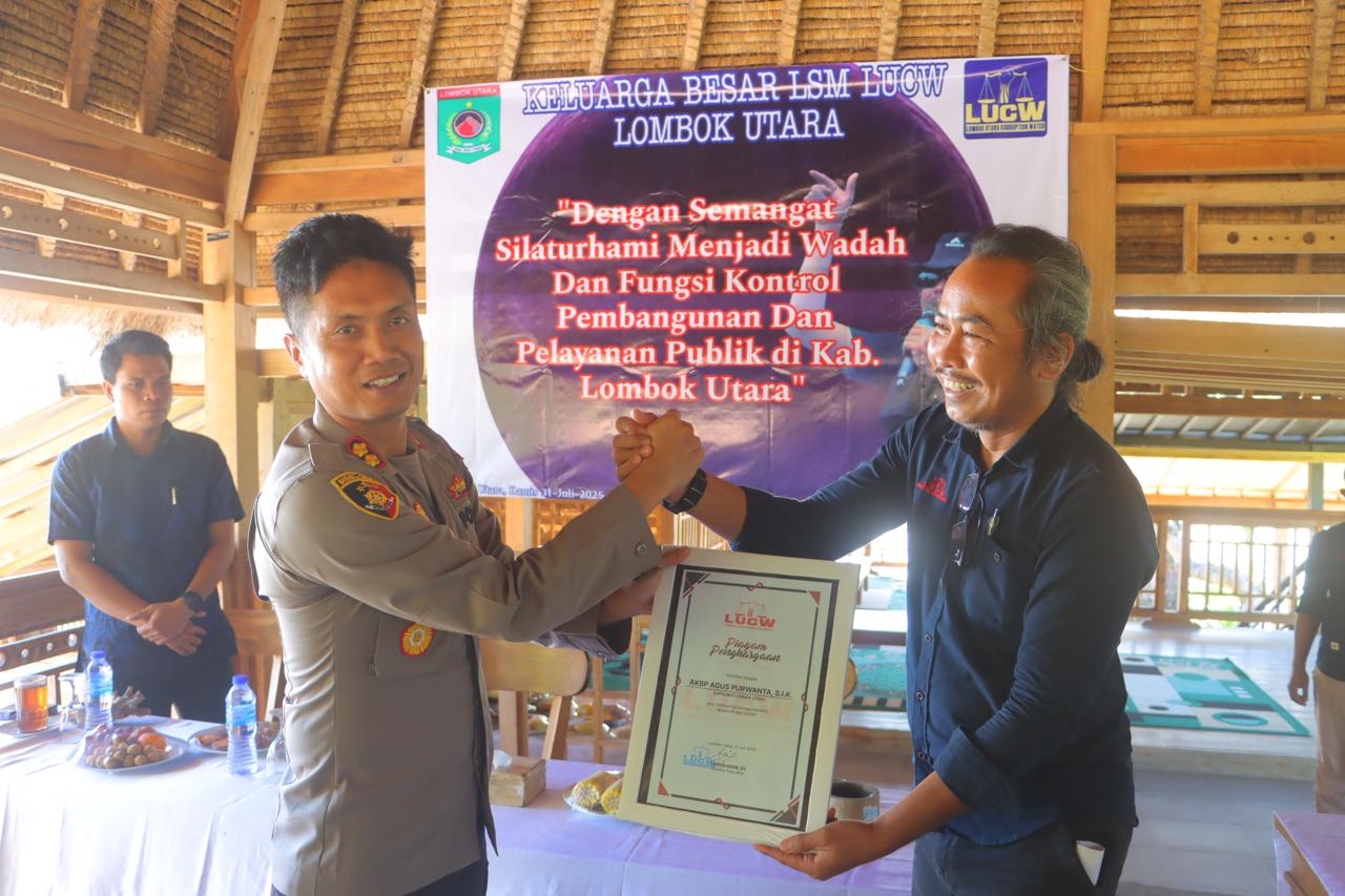 Penghargaan tersebut diberikan secara langsung oleh Ketua LSM LUCW, Tarpiin Adam, dalam acara silaturahmi antara Kepolisian Polres Lombok Utara, Pemerintah Daerah Kabupaten Lombok Utara, LSM, media, Kegiatan ini menjadi momentum mempererat komunikasi dan sinergitas antar elemen masyarakat.