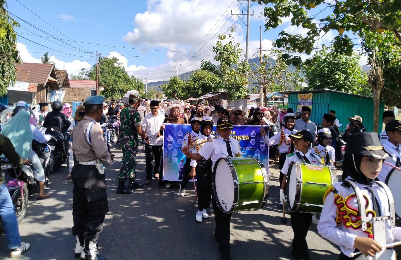 Polsek Monta Polres Bima Polda NTB melaksanakan pengamanan Pawai Ta’aruf dalam rangka Pembukaan MTQ tingkat Kecamatan Monta yang ke 56 tahun 2025.