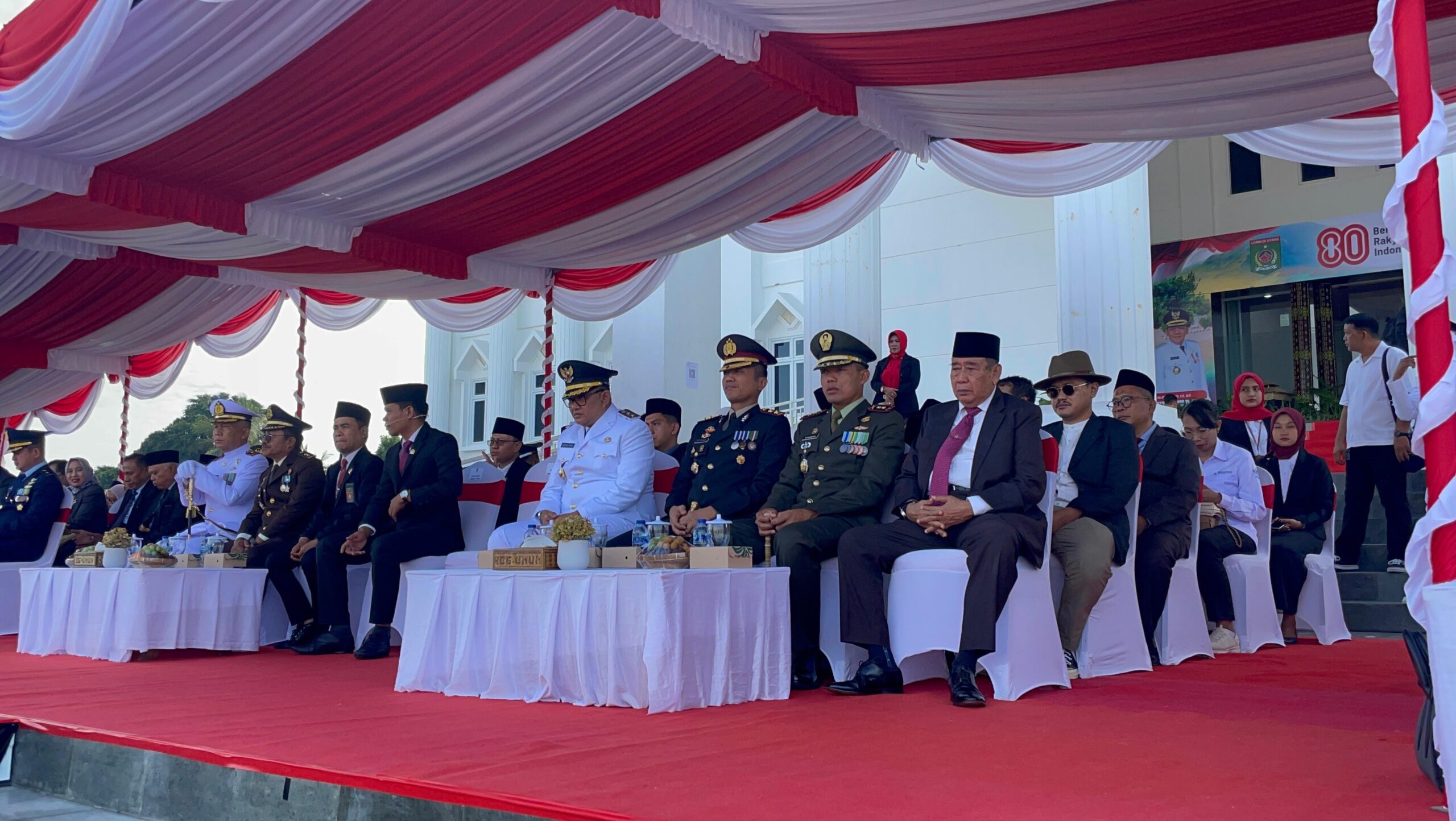 Lombok Utara – Dalam rangka memperingati Hari Ulang Tahun (HUT) ke-80 Kemerdekaan Republik Indonesia, Pemerintah Kabupaten Lombok Utara menggelar upacara pengibaran bendera Merah Putih di halaman Kantor Bupati, Minggu (17/8/2025).