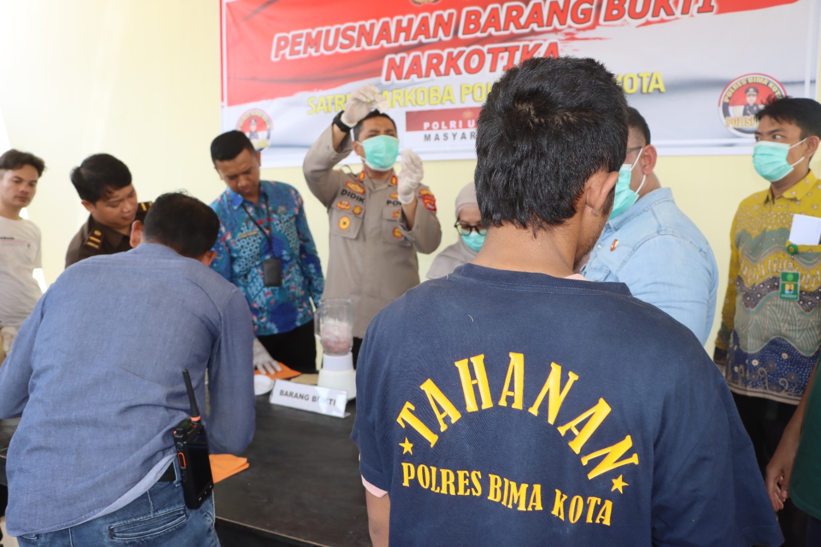 Kapolres Bima Kota AKBP Didik Putra Kuncoro, S.I.K., M.Si., memimpin langsung kegiatan ini, didampingi Wakapolres Bima Kota, Ketua Pengadilan Negeri Bima, Kepala Kejaksaan Negeri Bima, Kepala BNNK Bima, Kepala Balai BPOM Bima, serta unsur Forkopimda Kota Bima lainnya. Turut hadir pula perwakilan media, pengacara, dan tokoh masyarakat.