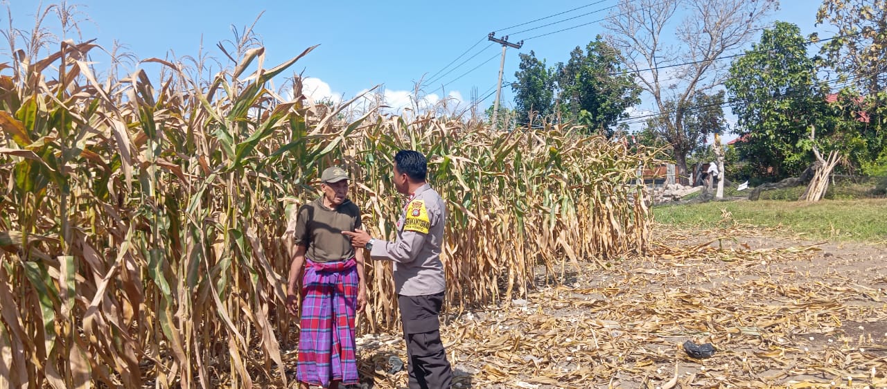 Bhabinkamtibmas Desa Kempo Lakukan Pemantauan tanaman jagung warga binaan.