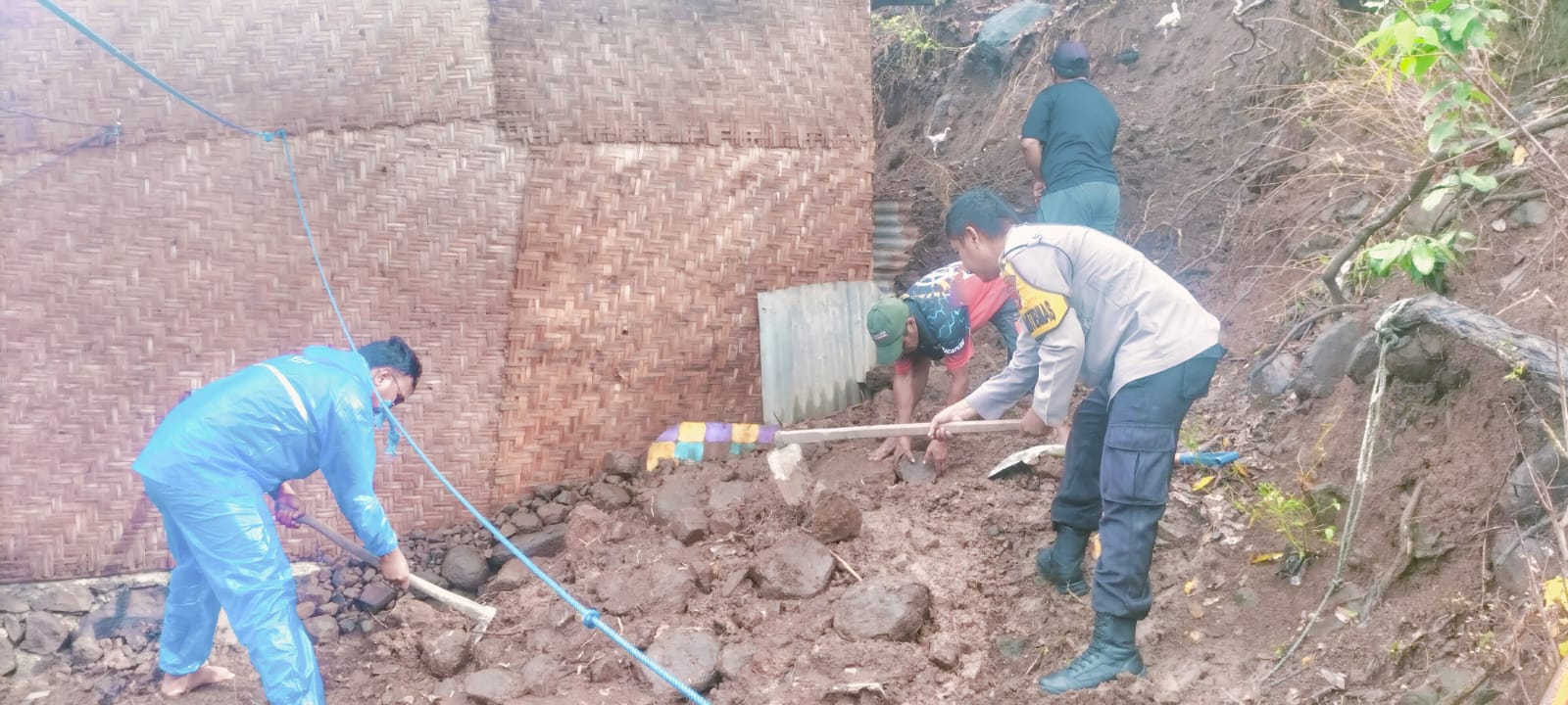 Bhabinkamtibmas Desa Mantun Bersama Warga Gotong Royong Bantu Warga Binaan Terdampak Korban Longsor