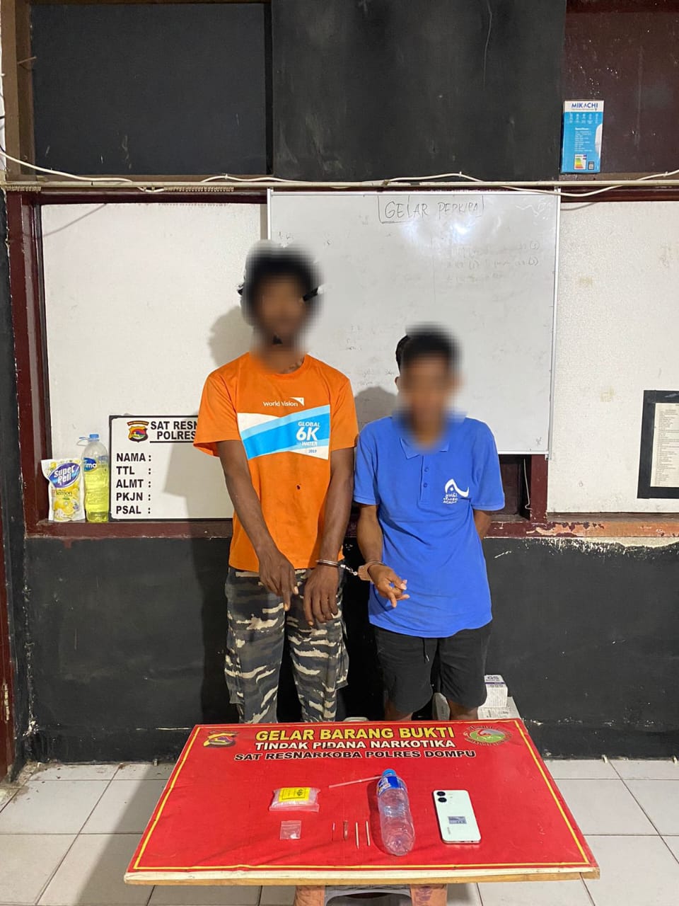 SATRESNARKOBA POLRES DOMPU BEKUK DUA TERDUGA PELAKU NARKOBA DI DUSUN NAPA