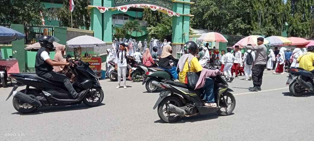 “Pada pukul 11.30 Wita, personel Polsek Rasanae Barat melaksanakan kegiatan rawan siang di Jalan Lintas Sultan Muhammad Salahuddin, tepatnya di depan MTsN 1 Padolo. Personel membantu menyeberangkan para siswa dan menertibkan arus lalu lintas guna menghindari kemacetan,” ujar Ipda Fitria.