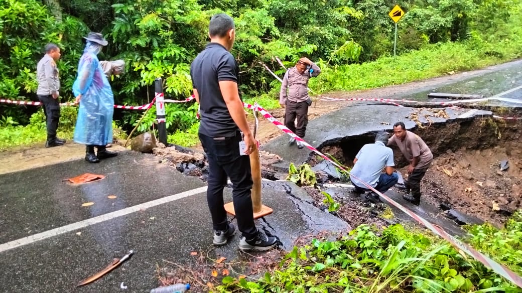 “Iya akibat hujan deras dengan intensitas tinggi mengakibatkan jalan raya utama yang menghubungkan Desa Tartar ke Talonang amblas dan terputus sehingga arus lalulintas terhenti total, Kapolsek Sekongkang bersama anggota dan pihak terkait langsung turun ke lokasi dan memasang tanda pengaman untuk tidak dilintasi kendaraan baik roda dua maupun roda empat dan lainnya, karena kondisinya membahayakan” ujar Kasi humas.