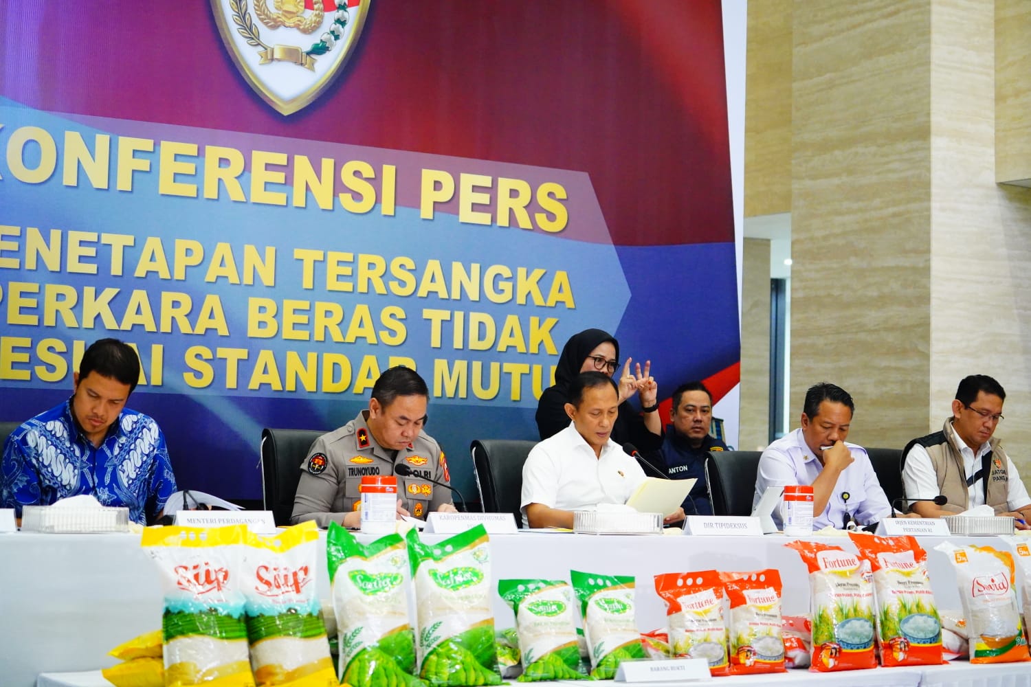 Jakarta, 5 Agustus 2025 — Kepolisian Negara Republik Indonesia melalui Satuan Tugas (Satgas) Pangan Polri resmi menetapkan tiga orang tersangka dalam kasus dugaan tindak pidana memproduksi dan memperdagangkan beras yang tidak sesuai dengan standar mutu. Konferensi pers digelar hari ini di Mabes Polri dan dibuka oleh Kepala Biro Penerangan Masyarakat Divisi Humas Polri, Brigjen Pol. Trunoyudo Wisnu Andiko.