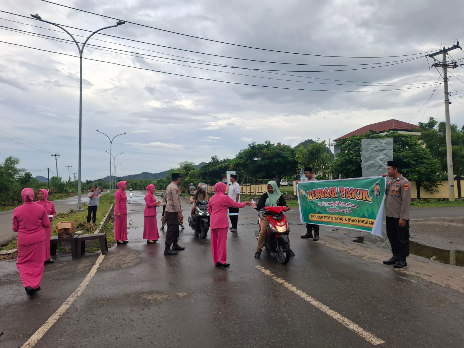 Sumbawa Barat, NTB – Memasuki hari ke-17 puasa Ramadhan, kegiatan ibadah dan amal kebaikan terus dilakukan umat Islam. Dalam mengisi bulan Ramadhan yang penuh berkah ini, Kapolsek Poto Tano, Ipda Abdul Gafir, bersama anggota dan Bhayangkari Ranting Poto Tano menggelar bagi takjil kepada pengguna jalan, pada Senin, 17 Maret 2025 sekitar pukul 17.30 WITA, bertempat di jalan raya depan Mapolsek Poto Tano.