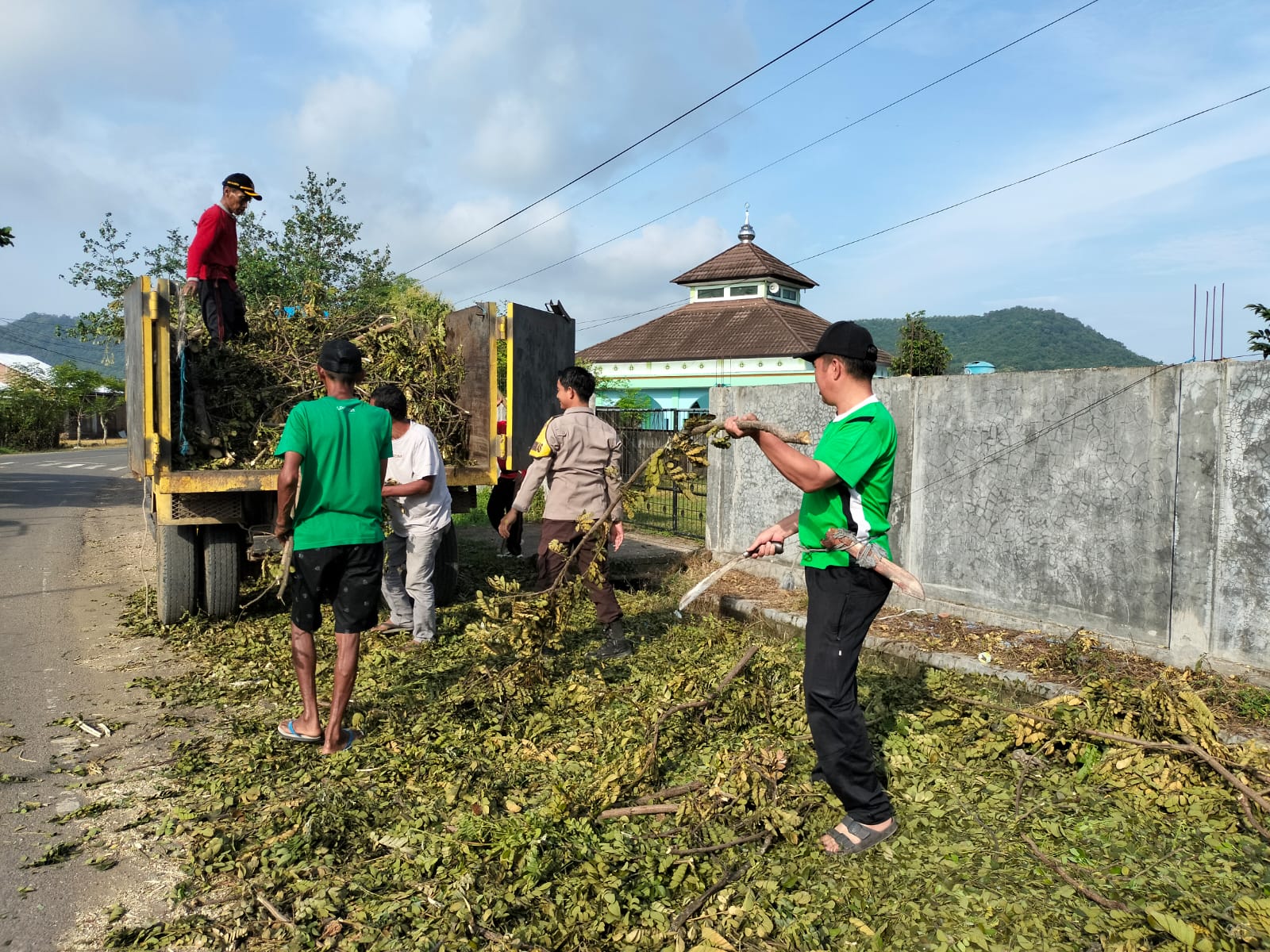 Dalam aksi gotong royong tersebut, petugas dan masyarakat bekerja sama membersihkan ranting pohon bekas tebangan akibat hujan angin yang melanda hampir seluruh wilayah Kecamatan Jereweh beberapa hari lalu sehingga aman bagi pengguna jalan.