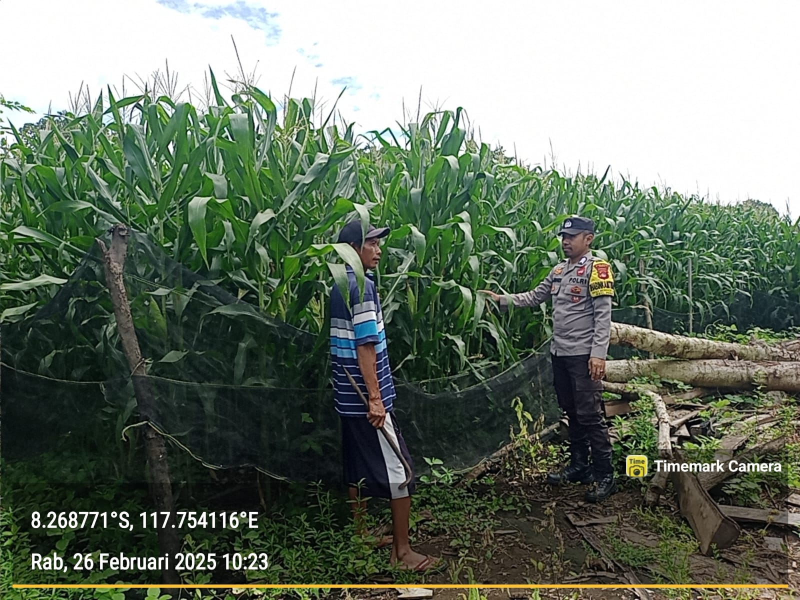 Dalam upaya mendukung Program Ketahanan Pangan Nasional Menuju Indonesia Emas 2024, Bhabinkamtibmas Desa Beringin Jaya, Polsek Pekat, Brigpol M. Junaidi, melakukan pemantauan lahan pertanian di Dusun Punia, Desa Beringin Jaya, Kecamatan Pekat, Kabupaten Dompu, pada Rabu (26/2/2025) pukul 10.20 WITA.