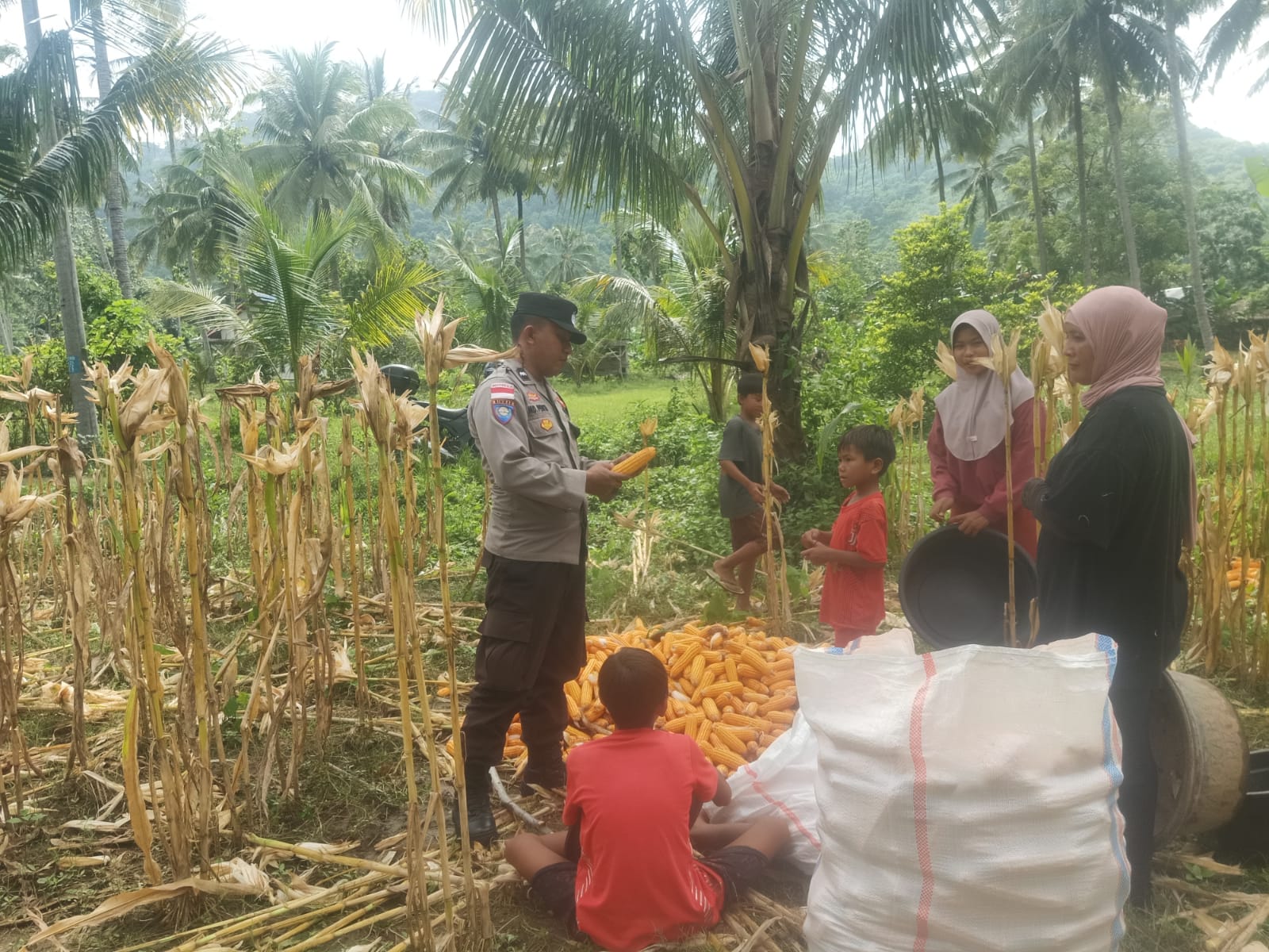 Kegiatan monitoring yang dilaksanakan sejak pukul 09.30 Wita ini menyasar langsung para buruh tani yang tengah memanen jagung. Aipda I Made Penita terjun langsung ke lapangan untuk memastikan kelancaran proses panen dan berdialog dengan para petani. Kehadiran Bhabinkamtibmas di tengah aktivitas panen ini bukan hanya sekadar pengawasan, namun juga sebagai bentuk pendampingan dan dukungan moril kepada para petani.