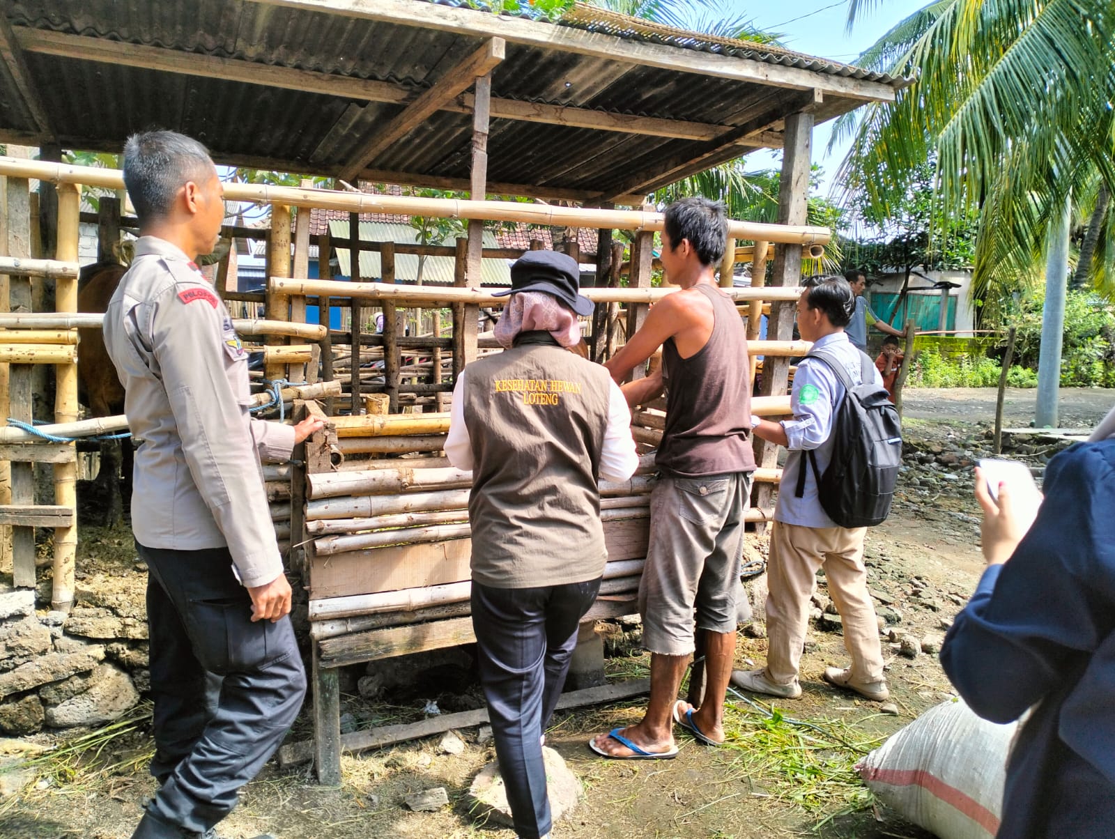 Selain itu, para petugas khususnya Bhabinkamtibmas juga siap membantu melakukan sterilisasi kandang, peralatan, alat angkut, dan bahan lainnya yang dapat menjadi perantara penularan penyakit.