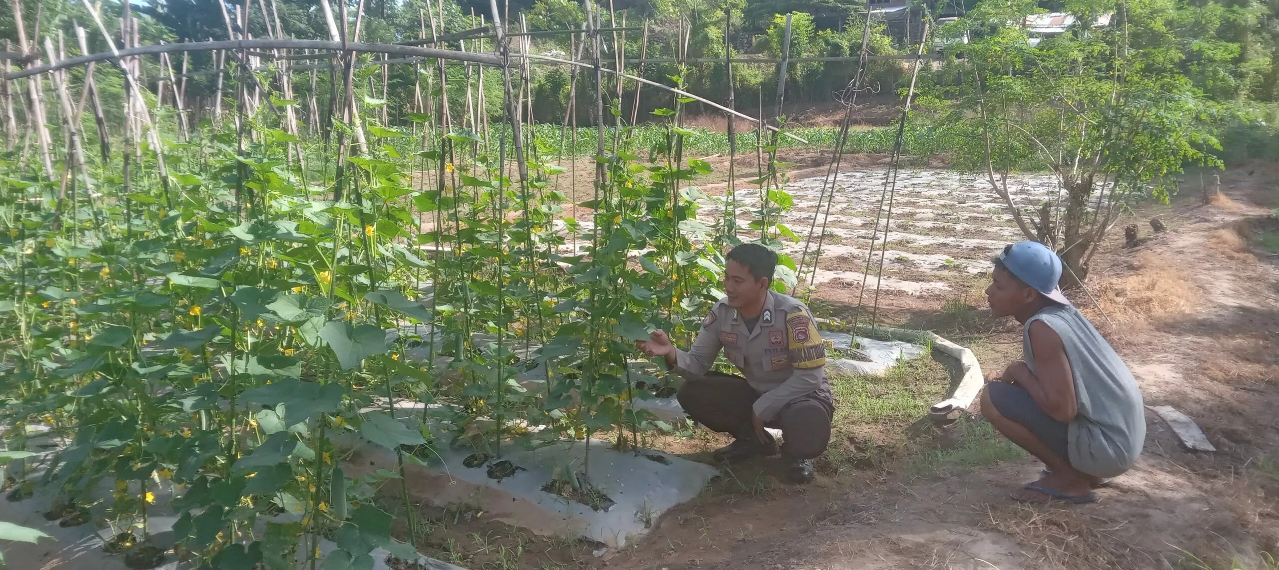 Dalam kunjungannya, Briptu Syarifudin tidak hanya memberikan pendampingan teknis, tetapi juga memotivasi para petani agar tetap semangat dan konsisten dalam mengembangkan tanaman hortikultura seperti mentimun, yang memiliki nilai ekonomi cukup tinggi. Ia juga menekankan bahwa apabila petani mengalami kendala dalam pengelolaan tanaman, mereka dapat segera berkoordinasi dengannya untuk difasilitasi langsung dengan Petugas Penyuluh Pertanian Lapangan (PPL) setempat.