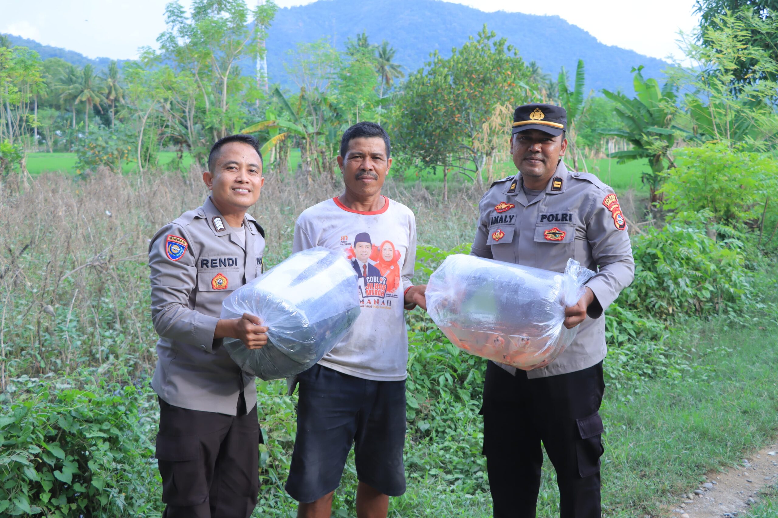 Sumbawa Barat NTB – Dalam mendukung program pemerintah di bidang ketahanan pangan dan swasembada pangan, Polres Sumbawa Barat melaksanakan aksi nyata memberikan benih ikan kepada masyarakat di Kelurahan Bugis Kecamatan Taliwang Kabupaten Sumbawa Barat, Senin (17/02/2025).