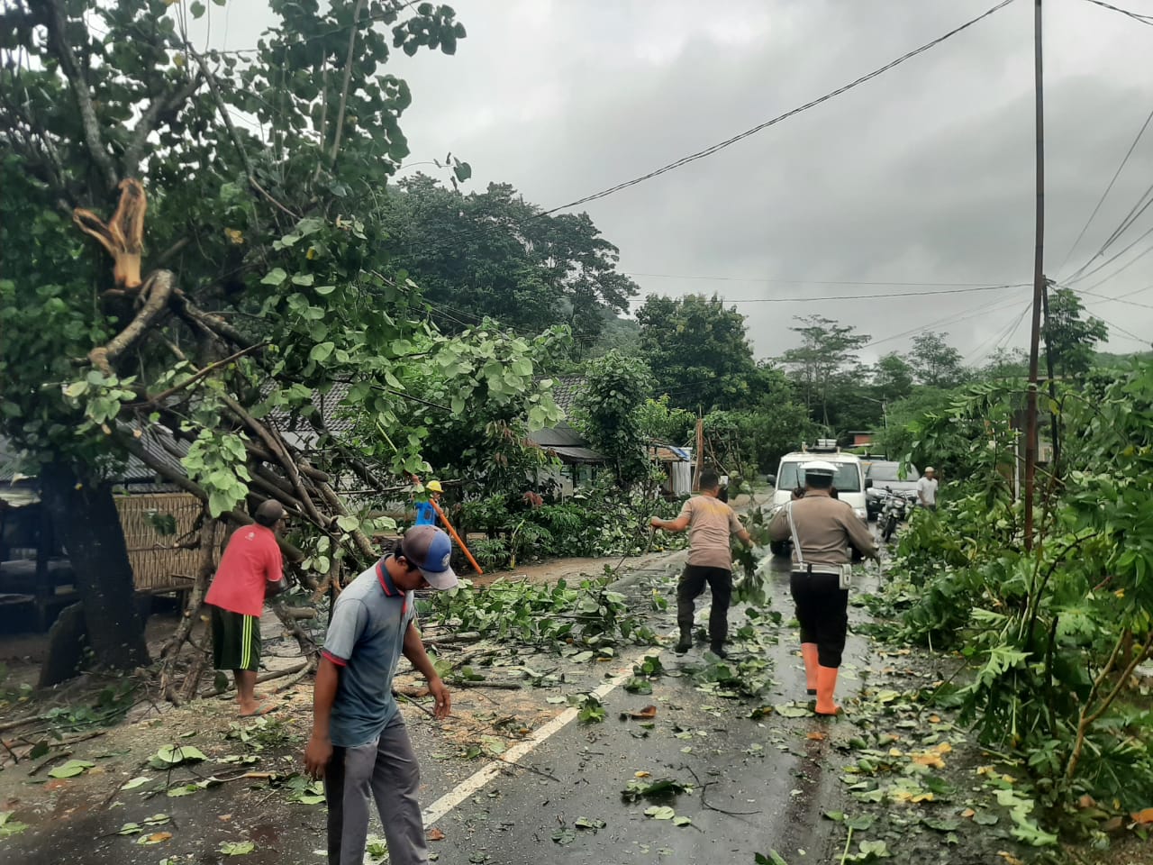 “Benar, pagi ini sekitar pukul 06.30 WITA telah terjadi pohon tumbang di Jl. Raya Sekotong – Buwun Mas. Ini akibat cuaca buruk, hujan lebat disertai angin kencang yang melanda wilayah Sekotong sejak semalam,” ujar Iptu I Ketut Suriarta.
