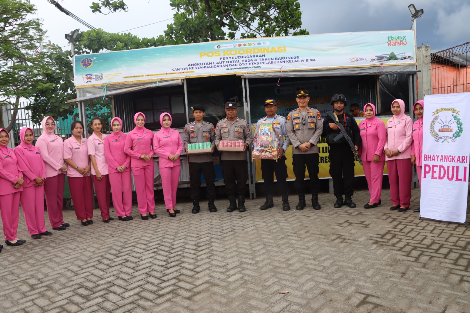 Kota Bima, NTB (29/12) – Sebagai bentuk apresiasi dan dukungan kepada personel yang bertugas dalam Operasi Lilin Rinjani 2024, Kapolres Bima Kota AKBP Yudha Pranata, S.I.K., S.H., bersama Ketua Bhayangkari Cabang Bima Kota Diah Yudha Pranata serta jajaran pengurus Bhayangkari, Waka Polres Kompol Herman, S.H., dan Pejabat Utama (PJU) Polres Bima Kota, memberikan bingkisan kepada personel di Pos Pengamanan (Pospam) dan Pos Pelayanan (Posyan).