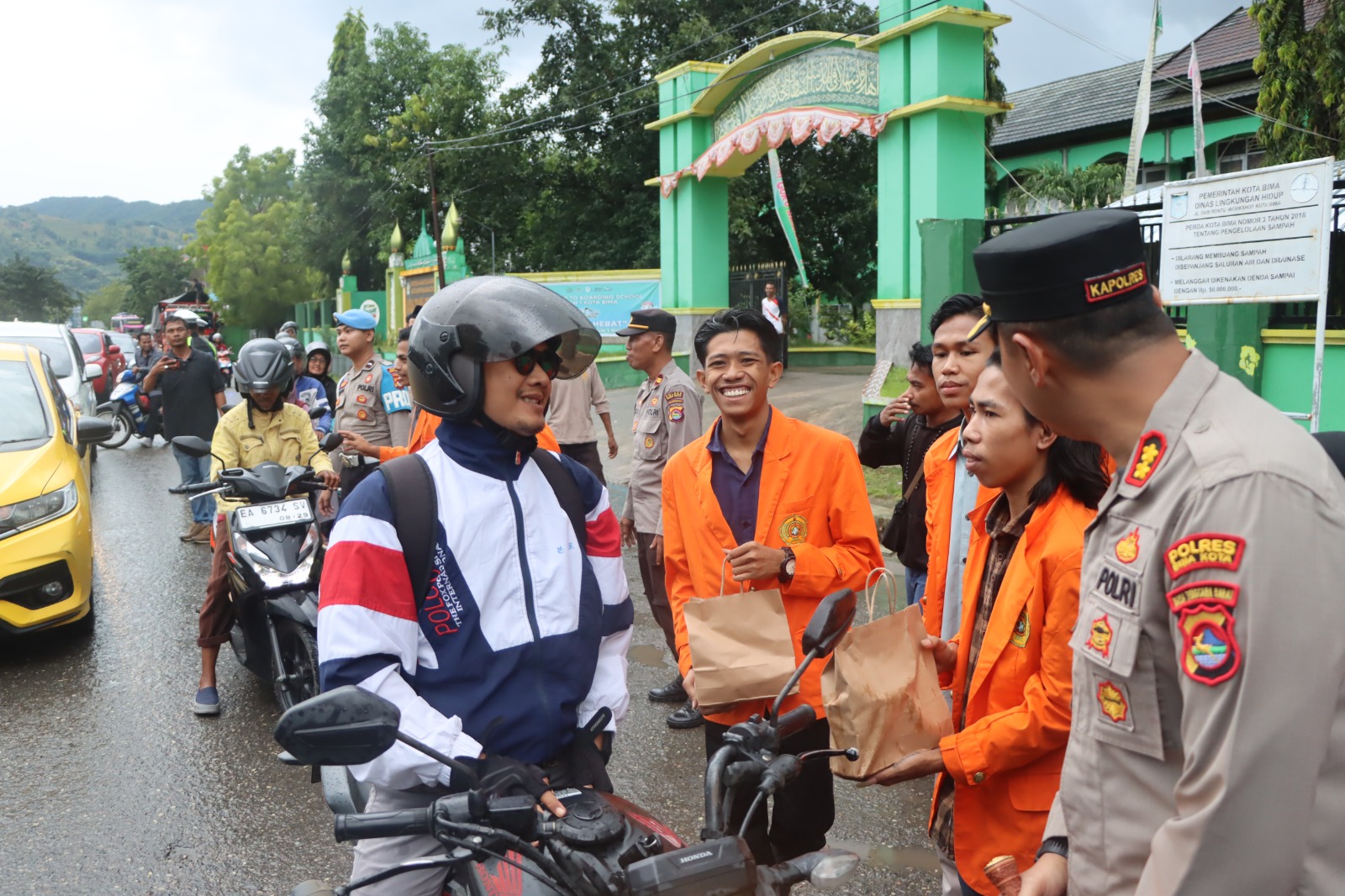 Kota Bima, NTB (20 Maret 2025) – Kapolres Bima Kota AKBP Didik Putra Kuncoro, S.I.K., M.Si., didampingi Ketua Bhayangkari Cabang Bima Kota Ny. Mira Didik, bersama Mahasiswa Universitas Mbojo Bima (UMBO Bima), Pejabat Utama (PJU), dan Personel Polres Bima Kota, melaksanakan kegiatan berbagi takjil kepada masyarakat dan pengguna jalan di depan Mako Polsek Rasanae Barat, Polres Bima Kota, Selasa (18/3/2025).