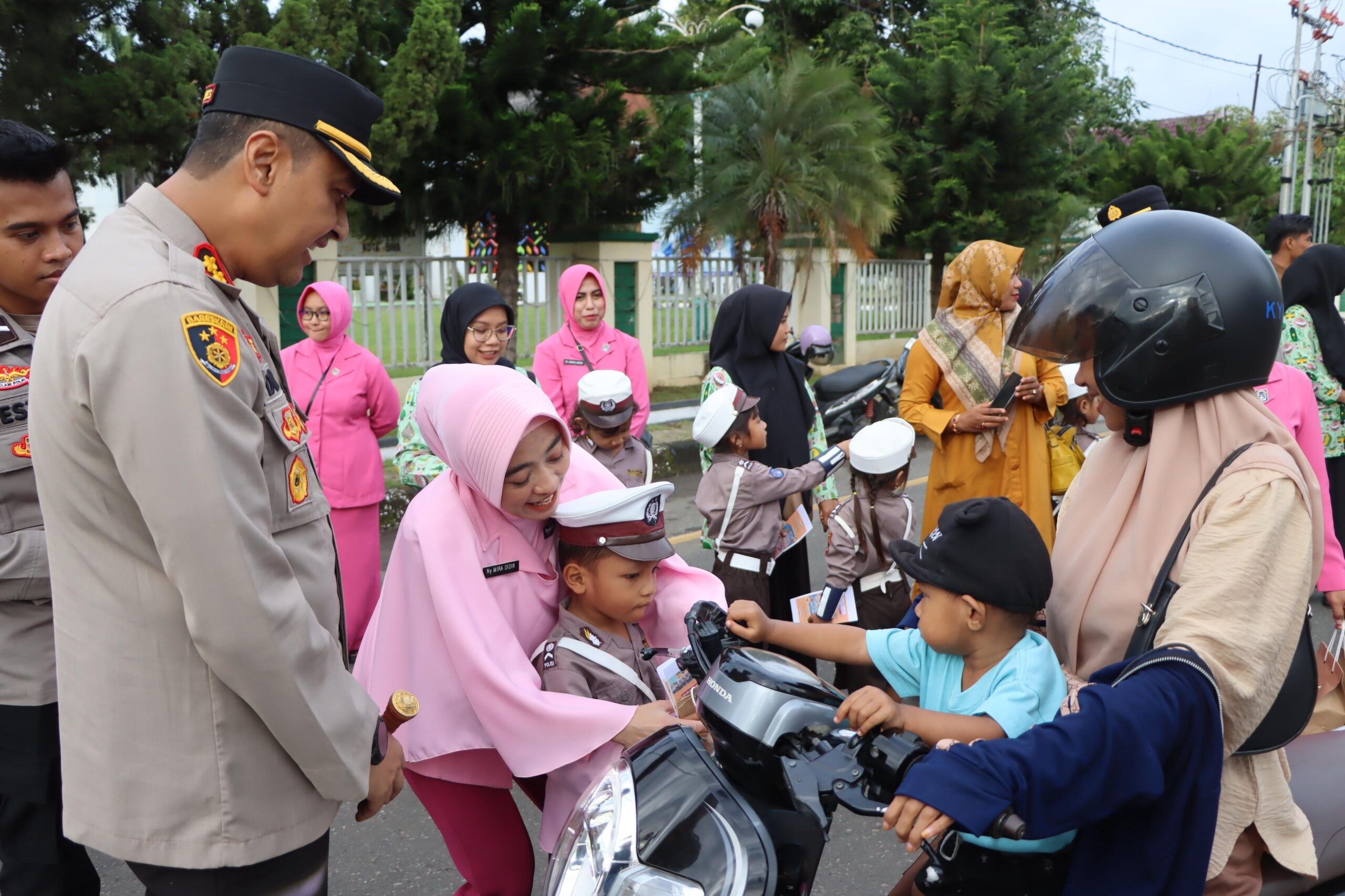 Kegiatan ini semakin istimewa dengan kehadiran Polisi Cilik dari TK Kemala Bhayangkari 06 Cabang Bima Kota, yang turut serta membagikan takjil kepada para pengendara yang melintas. Didampingi oleh Bhayangkari Cabang Bima Kota, para siswa terlihat antusias dan penuh semangat saat berinteraksi dengan masyarakat.