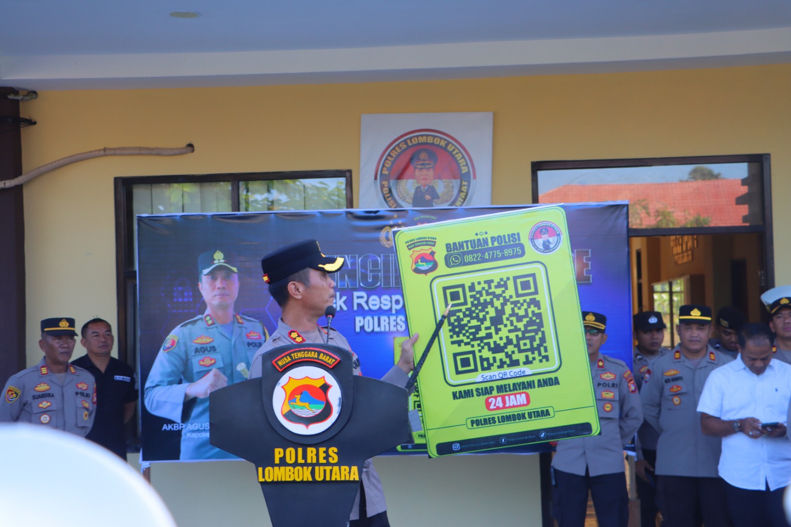 Lombok Utara – Dengan meningkatnya era digitalisasi yang semakin pesat, Kapolres Lombok Utara AKBP Agus Purwanta S.I.K. melounching Barcode untuk Quick respon dalam memberikan pelayanan kepada masyarakat yang bertempat di lapangan Tatag Trawang Tungga, Rabu, 12/4/2025.