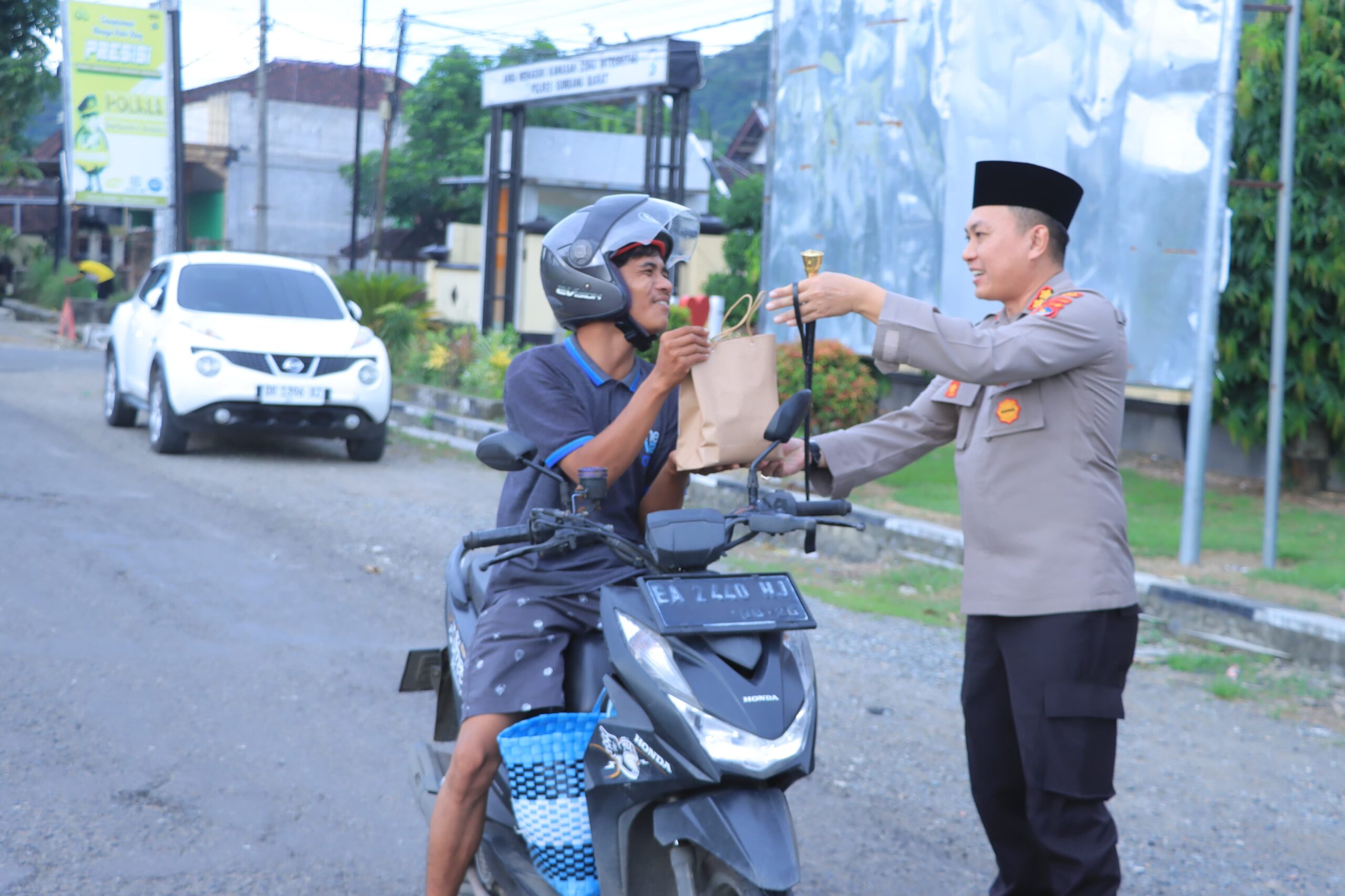 Sumbawa Barat, NTB – Kapolres Sumbawa Barat, AKBP Yasmara Harahap, S.I.K., membagikan takjil untuk berbuka puasa bagi pengguna jalan yang melintas di depan Mapolres Sumbawa Barat Jalan Telaga Bertong Kecamatan Taliwang Kabupaten Sumbawa Barat, pada Selasa (11/03/2025).
