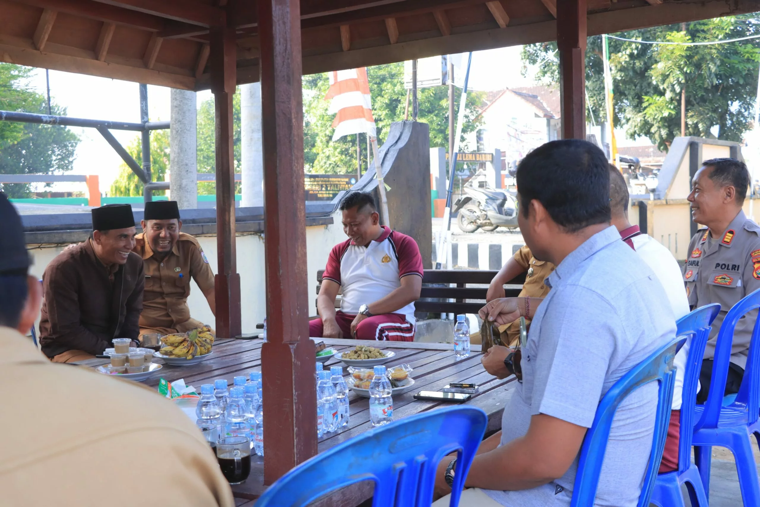 Suasana hangat dan penuh keakraban sudah terasa sejak awal kegiatan. Kapolres bersama Wakapolres Kompol I Nyoman Adi Kurniawan, S.H., Camat Taliwang Hermanto, S.Pd., Kapolsek Taliwang AKP Saiful, serta para undangan lainnya tampak membaur dalam obrolan santai namun sarat makna, membahas berbagai isu kamtibmas di wilayah Taliwang.