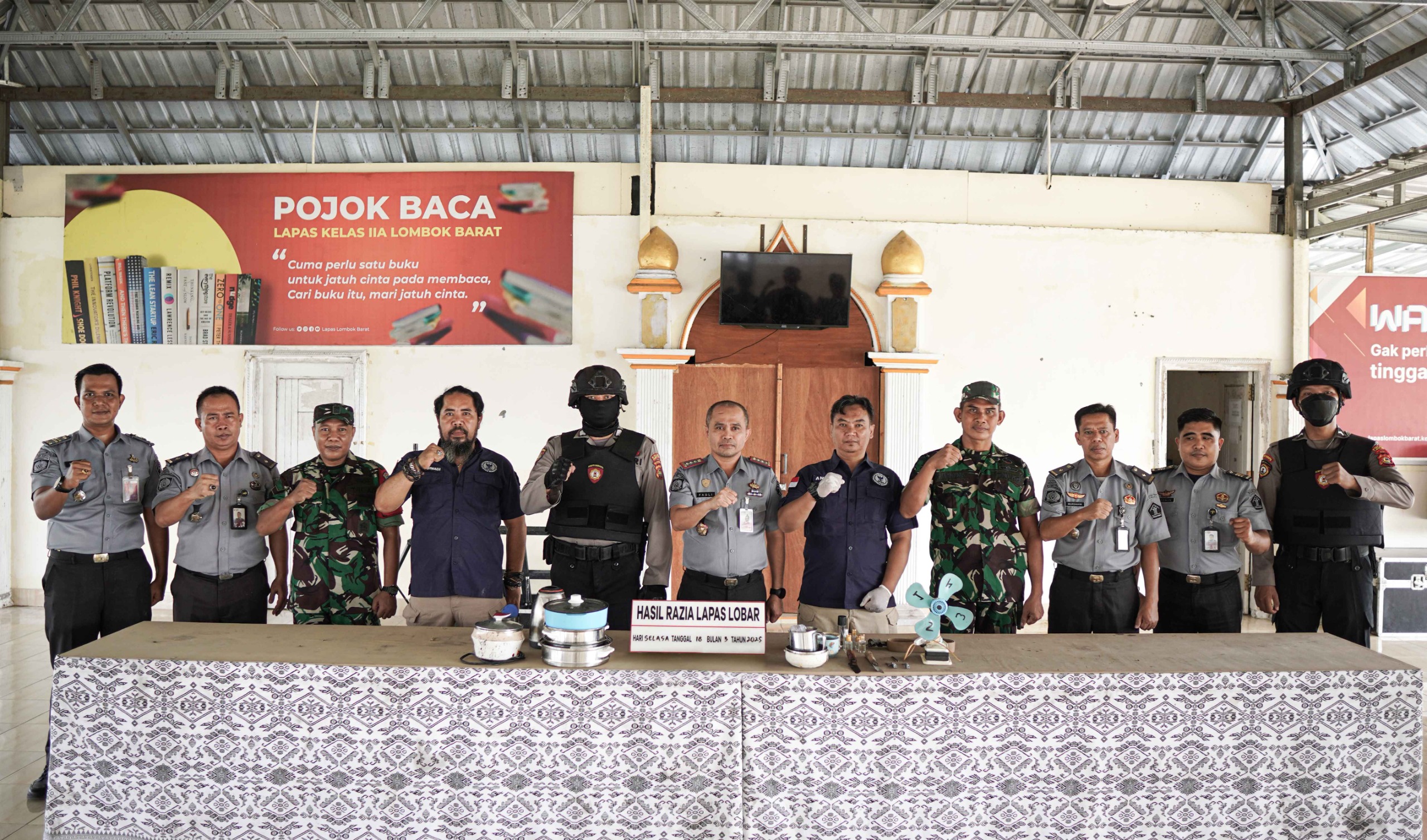 Lombok Barat : – Menjelang hari raya Idul Fitri 1446 H tahun 2025, Lembaga Pemasyarakatan (Lapas) Kelas IIA Lombok Barat, kembali menggelar razia gabungan kamar hunian dan tes urine bagi Warga Binaan dengan melibatkan unsur TNI, POLRI dan BNN, Selasa (18/03/2025).