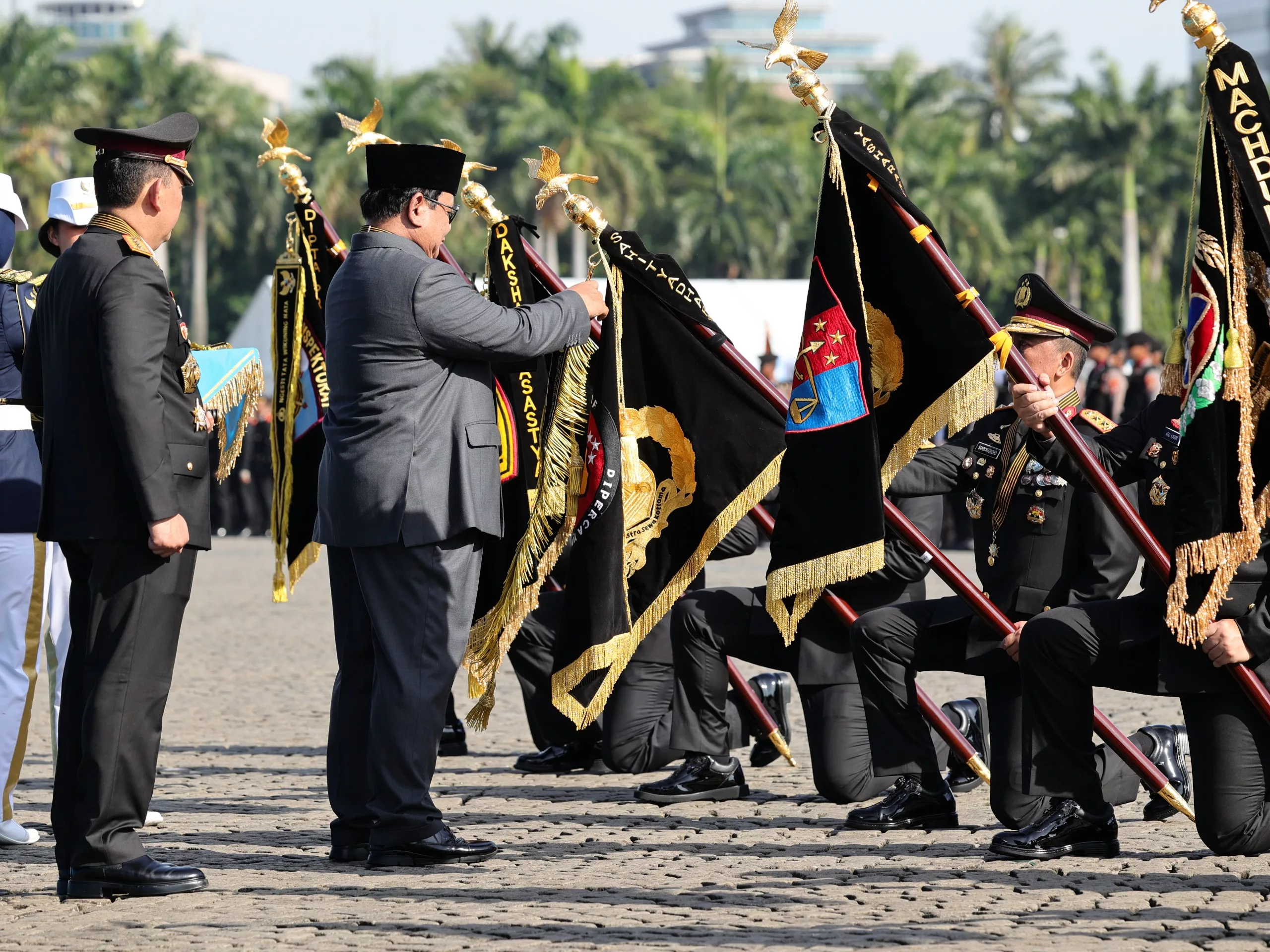 “Menganugerahkan tanda kehormatan Nugraha Sakanti kepada kesatuan di lingkungan kepolisian sebagai penghargaan atas jasanya di bidang tugas kepolisian yang bermanfaat bagi kepentingan bangsa dan negara,” bunyi ketetapan Presiden Prabowo yang dibacakan saat upacara Peringatan HUT Bhayangkara ke-79 di Lapangan Silang Monas, Jakarta Pusat, Selasa (1/7/25).