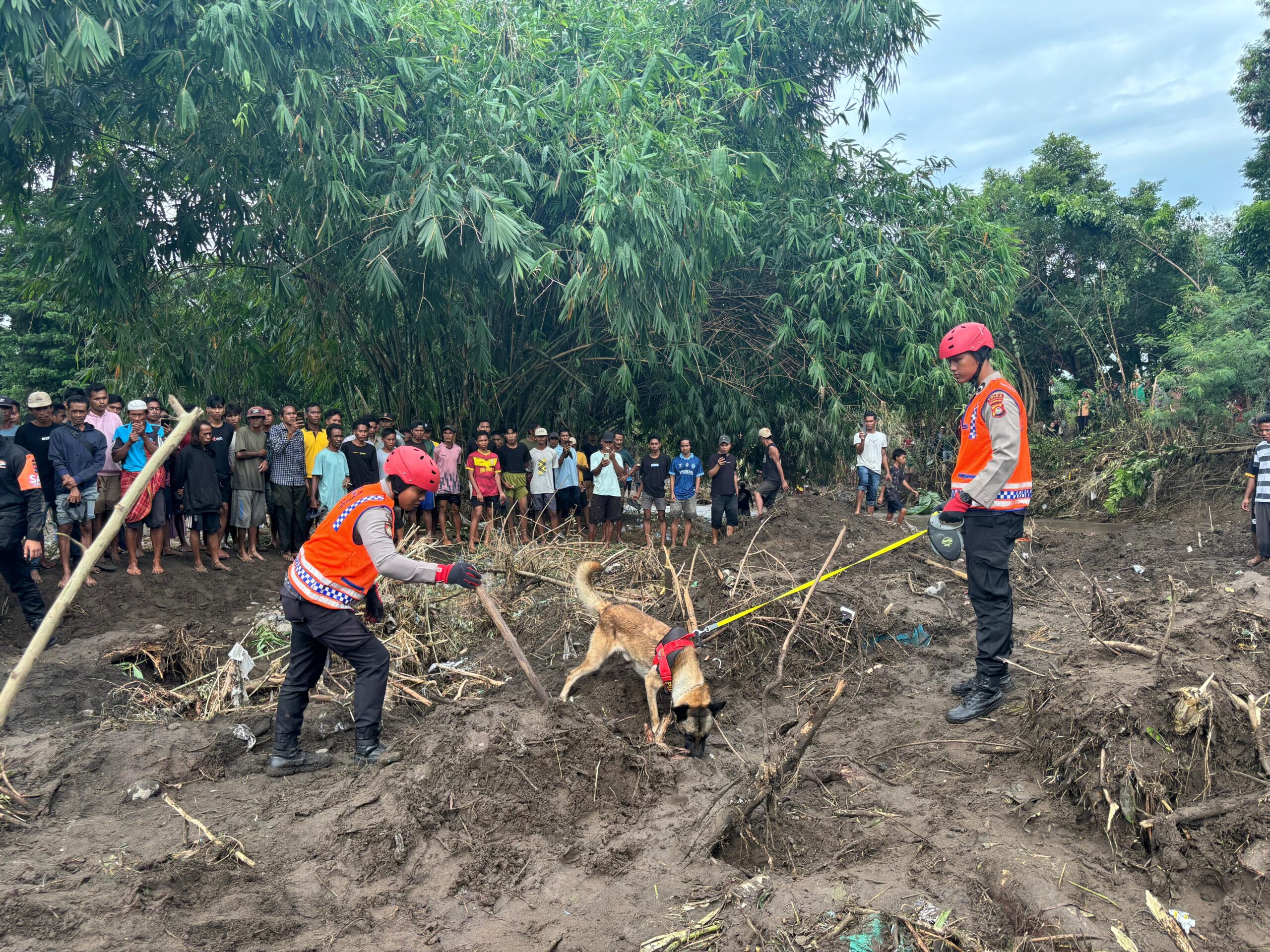 Kota Bima, NTB (6 Februari 2025) – Upaya pencarian terhadap lima korban banjir bandang di Kecamatan Wera, Kabupaten Bima, hingga saat ini masih terus dilakukan. Untuk mempercepat proses pencarian, Kepolisian Daerah Nusa Tenggara Barat (Polda NTB) mengerahkan personel bersama satu ekor anjing pelacak dari Unit Polmas K-9 Direktorat Samapta yang memiliki keahlian dalam pencarian dan penyelamatan (SAR).