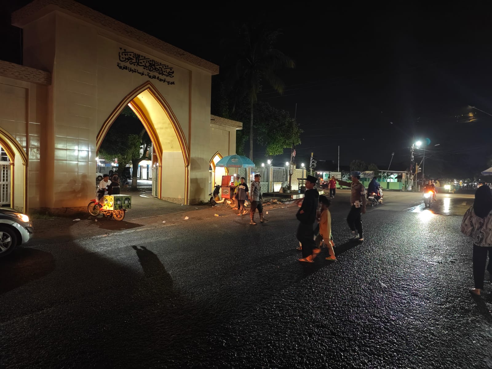 Pantauan di lokasi menunjukkan bahwa anggota Polsek Kediri aktif mengatur arus lalu lintas di sekitar Masjid Jamiq Baiturahman. Hal ini dilakukan untuk mengantisipasi terjadinya kepadatan kendaraan mengingat banyaknya jamaah yang datang untuk melaksanakan salat Tarawih. Selain itu, kehadiran petugas yang membantu menyeberangkan masyarakat sangat membantu, terutama bagi pejalan kaki dan anak-anak, sehingga mereka merasa lebih aman dan nyaman.