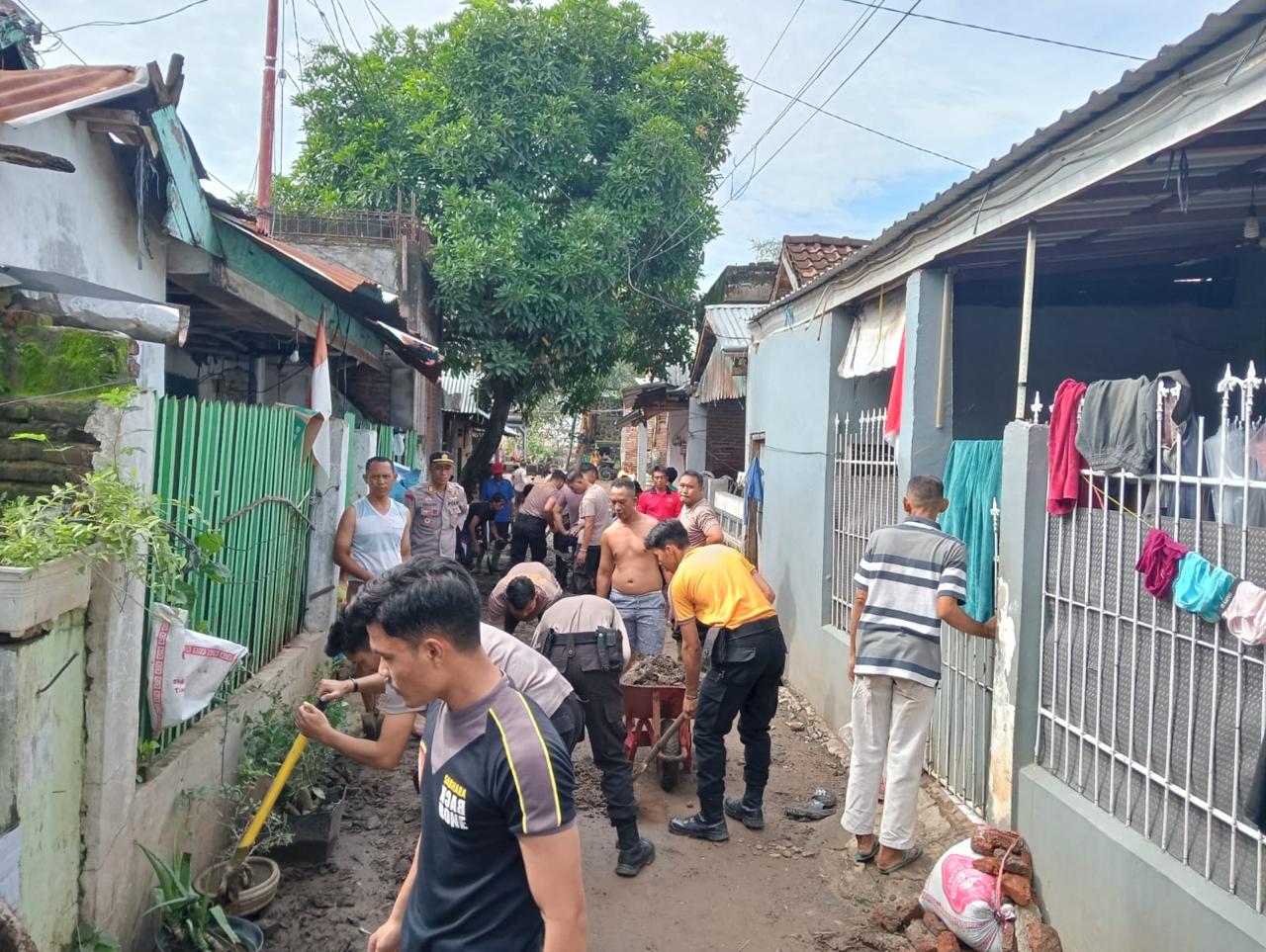 Kota Bima, NTB (29/12) – Sebagai wujud kepedulian terhadap masyarakat yang terdampak banjir, personel Polres Bima Kota menggelar aksi gotong royong untuk membersihkan sisa-sisa lumpur dan material yang menggenangi jalan serta rumah warga di Kelurahan Paruga, Kota Bima.