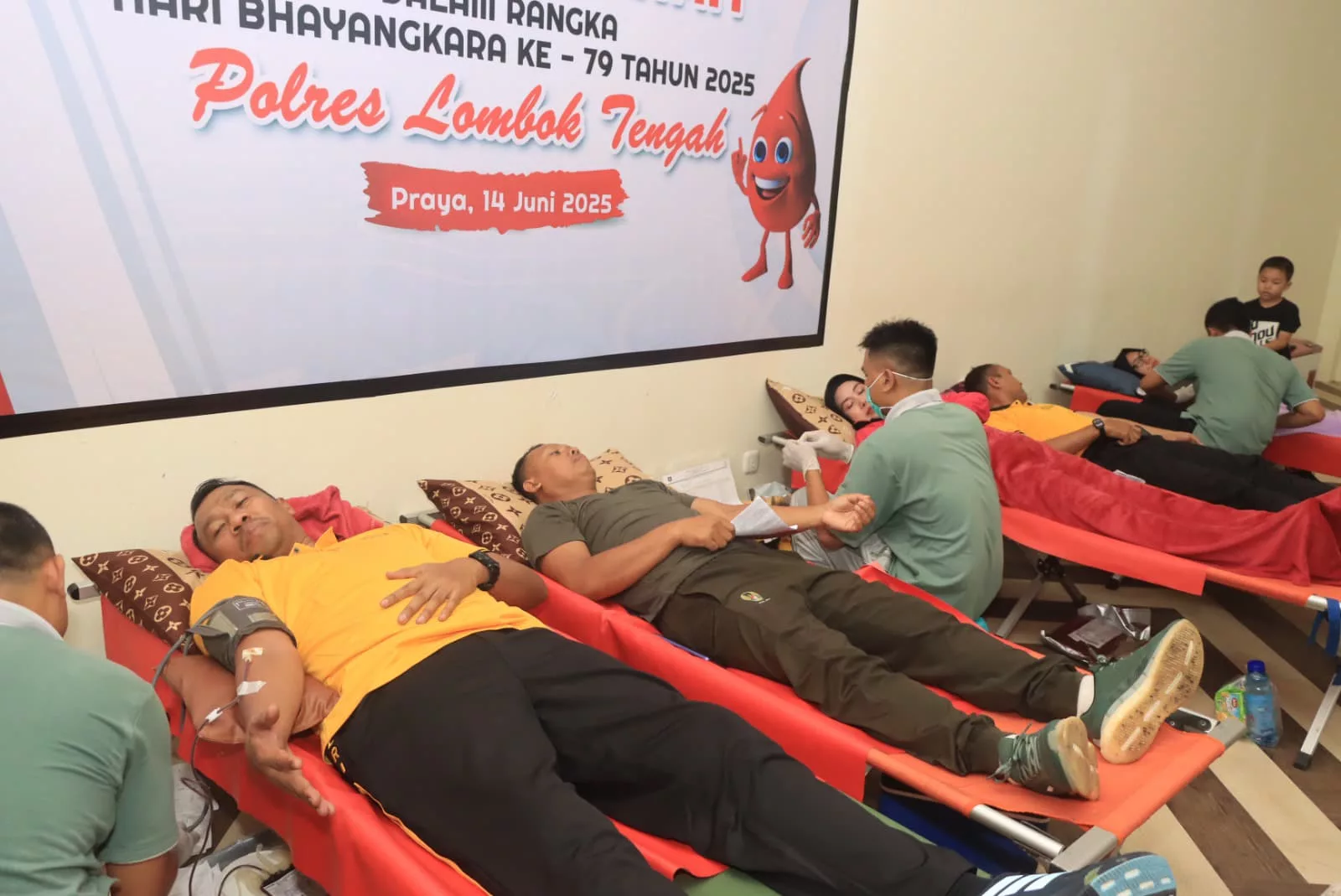 Lombok Tengah, (NTB) – Kepolisian Resor Lombok Tengah menyelenggarakan kegiatan bakti kesehatan donor darah dalam rangka memperingati Hari Bhayangkara ke-79 yang berlangsung di Gedung PKK Kabupaten Lombok Tengah.