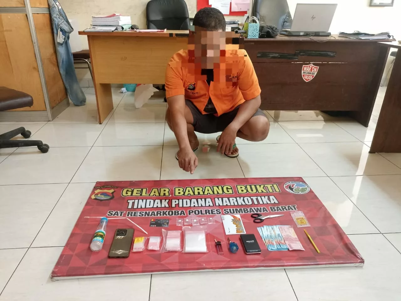 Dalam pengungkapan tersebut, petugas berhasil mengamankan seorang pria berinisial IF alias PO, warga Kelurahan Dalam, yang diduga kuat sebagai bandar narkoba di wilayah Sumbawa Barat. Penangkapan dilakukan di rumah terduga pelaku, di mana ditemukan sejumlah barang bukti yang berkaitan dengan aktivitas peredaran narkoba.