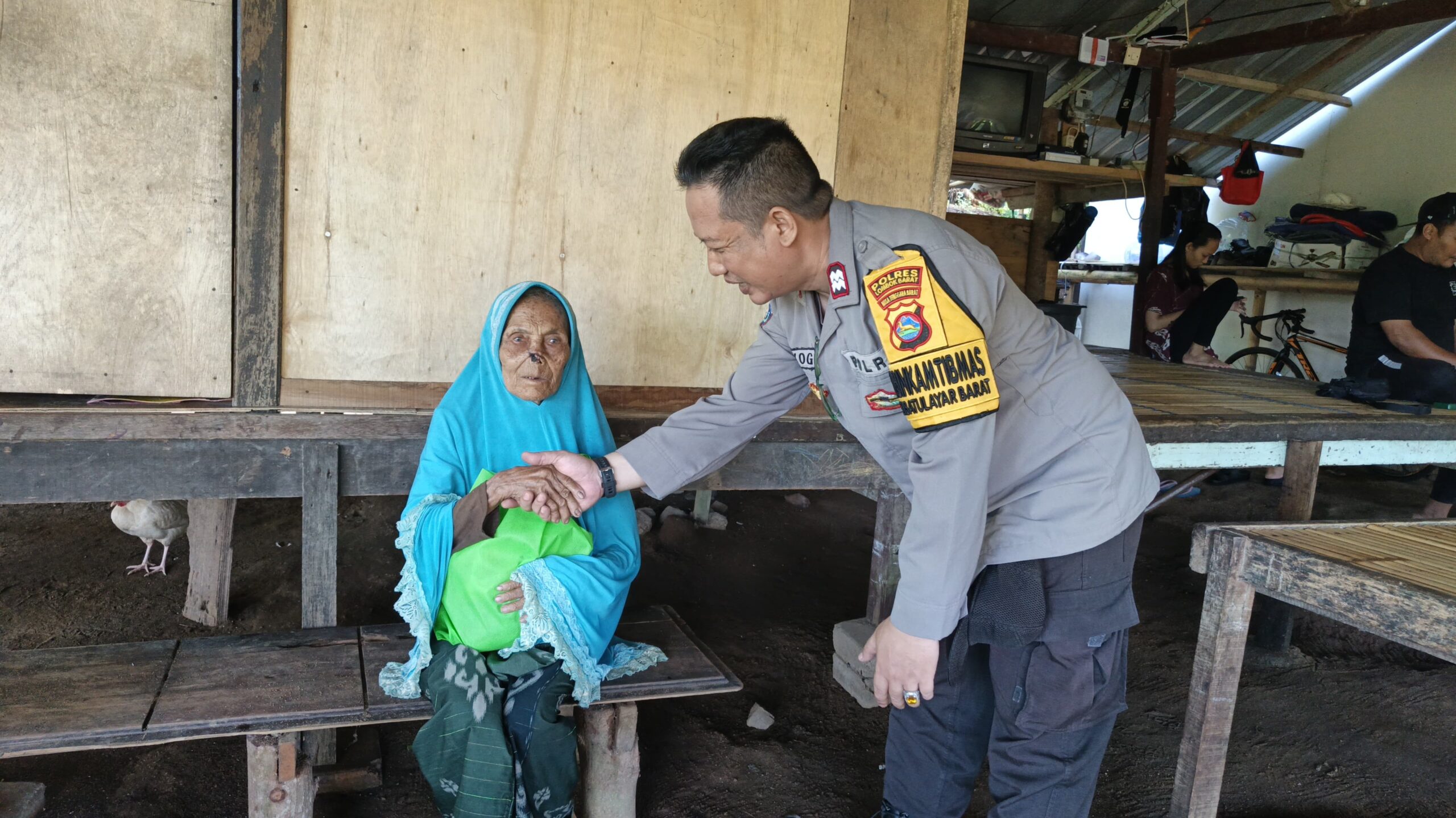 Dalam kegiatan tersebut, Bhabinkamtibmas Desa Batulayar Barat secara langsung menyerahkan bantuan berupa bahan makanan bergizi tinggi kepada dua orang lansia di dusun tersebut.