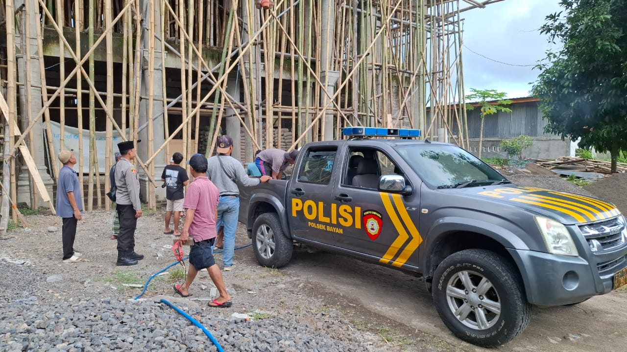 Penyerahan bantuan berupa semen tersebut dilakukan langsung oleh Kapolsek Bayan Iptu I Wayan Ciptanaya, SH., M.I.Kom., bersama personil Polsek Bayan.