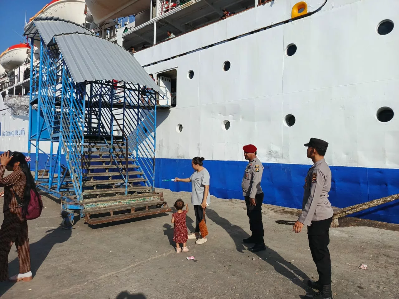 Bima Kota, NTB (3 Juli 2025) – Polsek Kawasan Pelabuhan Laut Bima melaksanakan pengamanan kegiatan embarkasi dan debarkasi kapal penumpang KM. BINAIYA yang bersandar di Pelabuhan Bima, Jalan R.E. Marthadinata, Kelurahan Tanjung, Kecamatan Rasanae Barat, Kota Bima, Kamis (3/7/2025) pukul 07.00 WITA.