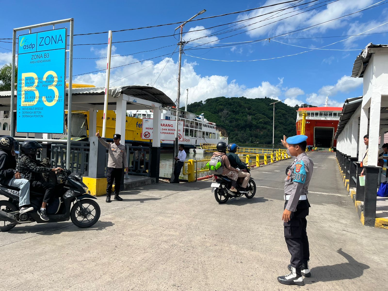 Tidak hanya fokus pada kendaraan, petugas kepolisian juga aktif memberikan himbauan kepada para pengguna jasa pelabuhan dan penumpang kapal.